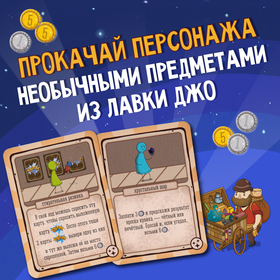 | Комплектация | игровое поле, 59 карт, 90 жетонов монет, 5 персонажей, 5 подставок под персонажей, 2 кубика, свод законов |