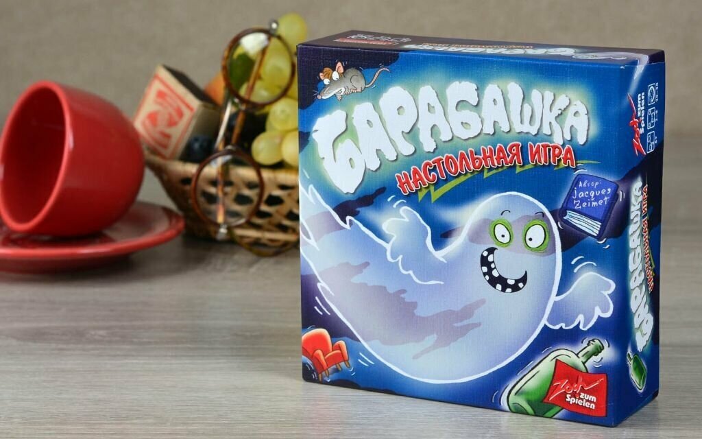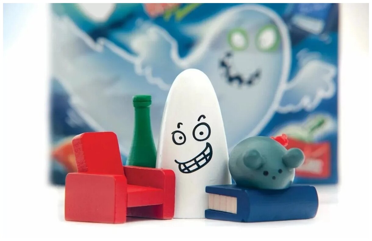 | Комплектация | 5 деревянных фигурок (привидение, кресло, книга, бутылка и мышь), 60 карт, правила игры |