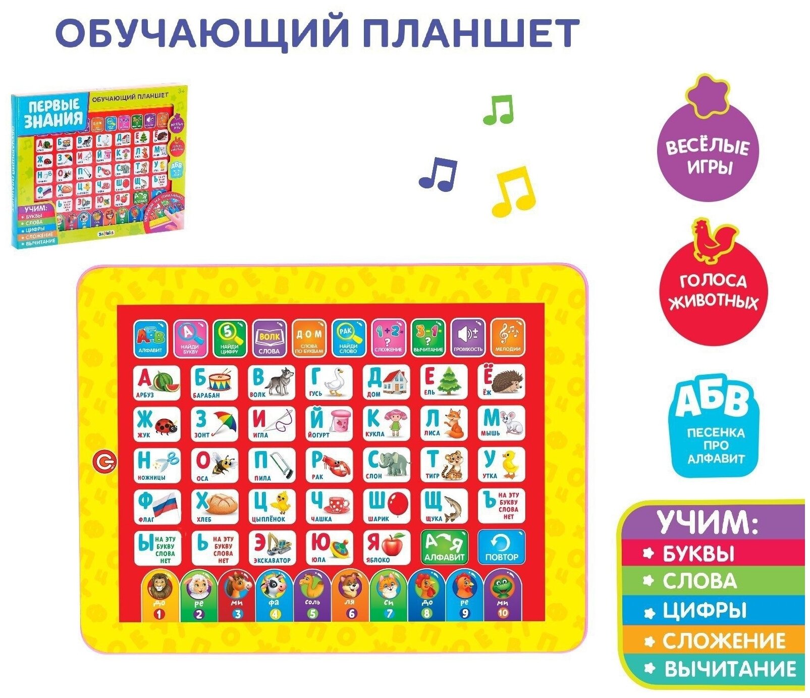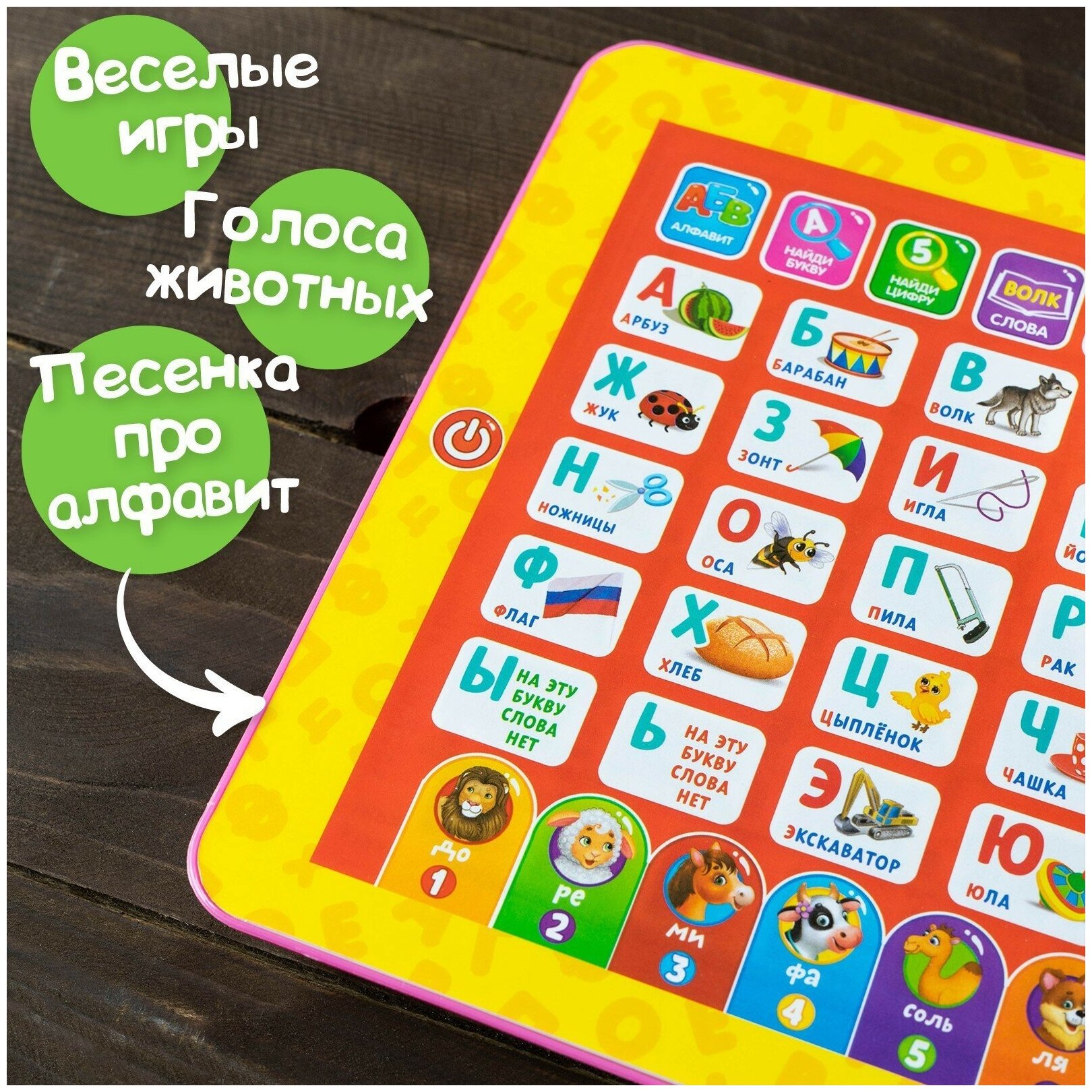 Купить Планшет обучающий "Первые знания", изучаем алфавит, слова, цифры, сложение, вычитание, для детей и малышей от 3 лет