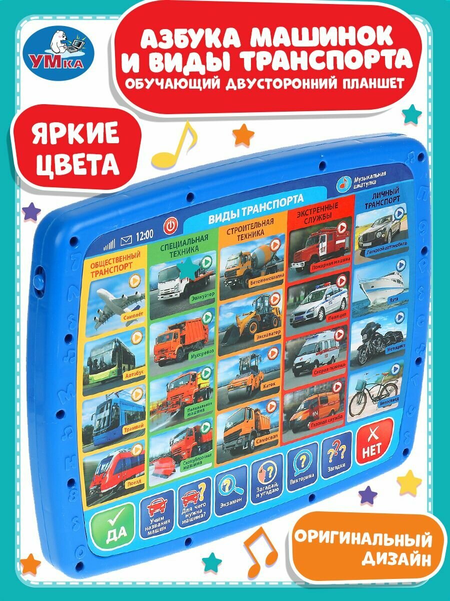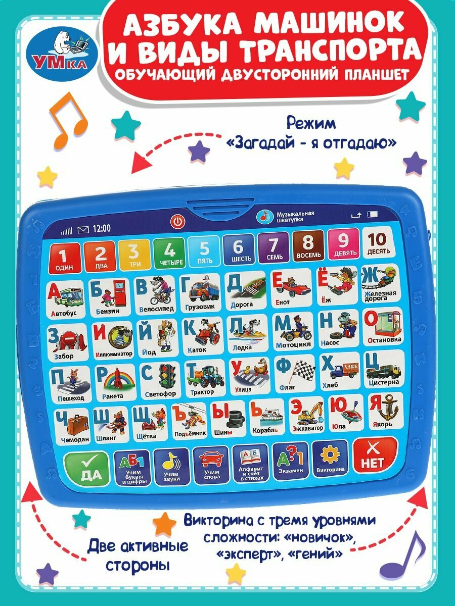 Купить Двусторонний планшет Азбука машинок и виды транспорта УМка HT1103-R