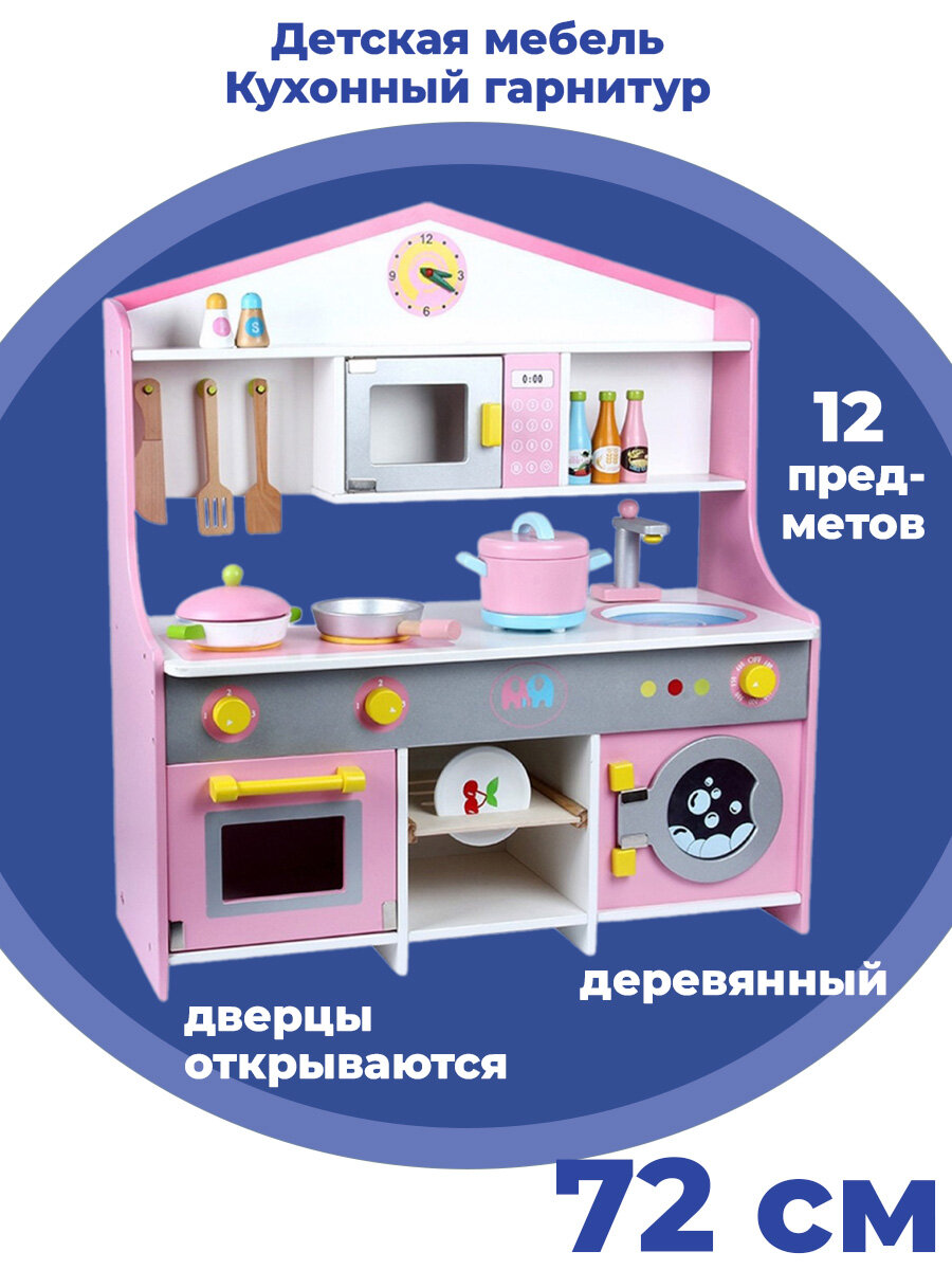 Детская кухня мебель деревянная 12 предметов 62x23x72 см интересное: