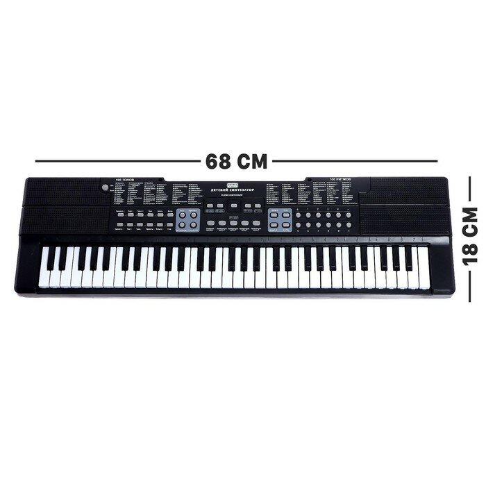 Купить Детский музыкальный синтезатор 65 х 19 см с микрофоном, от сети или от батареек, 61 клавиша, регулятор громкости и темпа, 100 тонов и ритмов