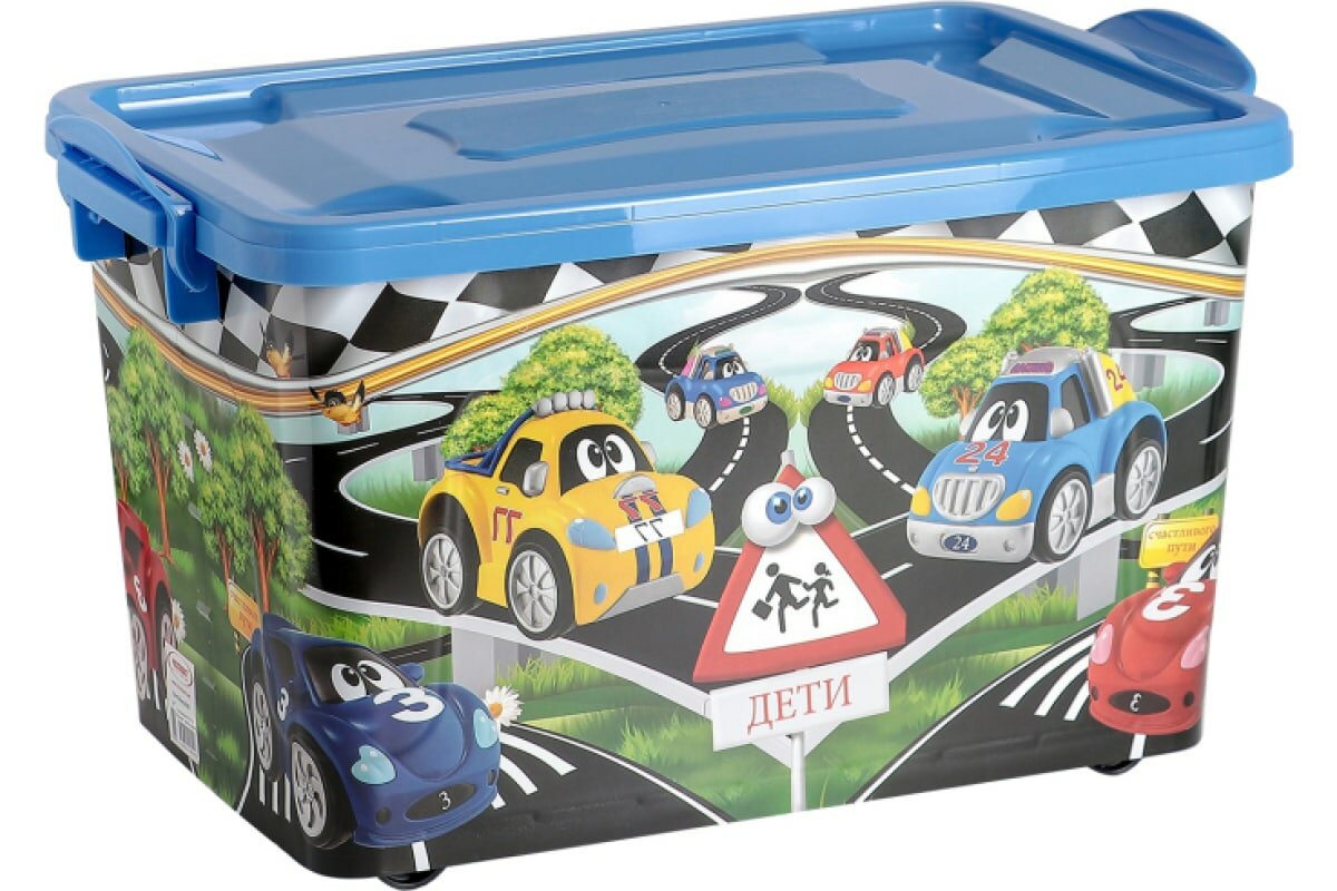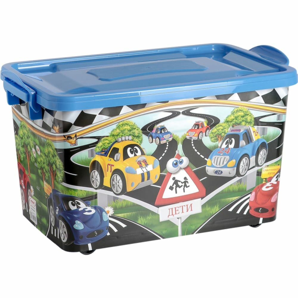 Контейнер росспласт Машинки, 50 л, Темно-голубой