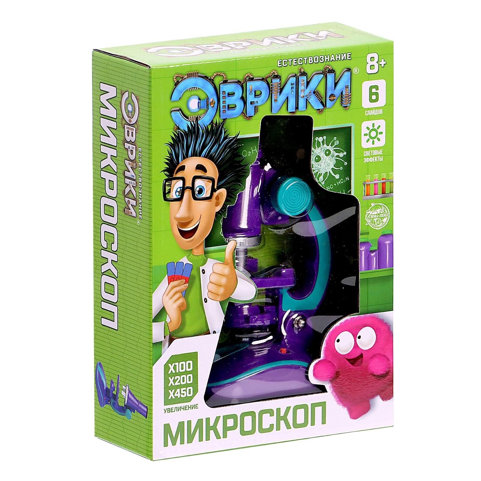 Эврики Микроскоп «Юный биолог», кратность увеличения 450х, 200х, 100х, с подсветкой,