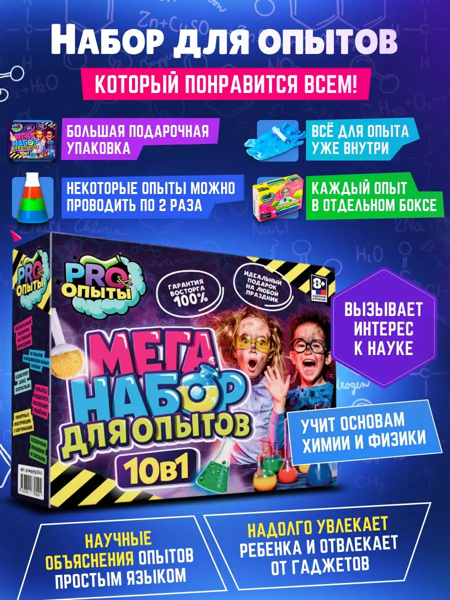 Купить Опыты для детей 10 в 1: лучшие эксперименты, подарки мальчикам на 9 лет, на 8 лет, на 6 лет, необычные подарки для мальчика 7 лет, подарок для девочки