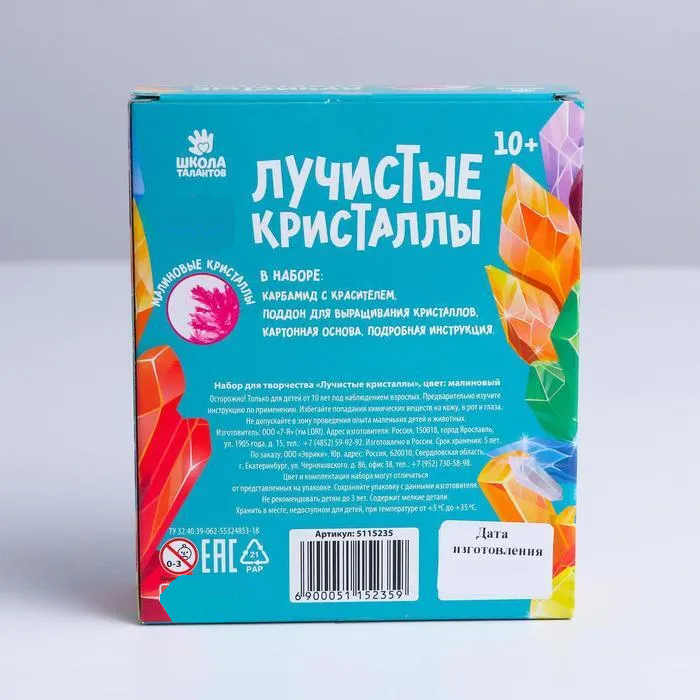 | Дополнительная информация | кристаллы вырастают за 2 дня |