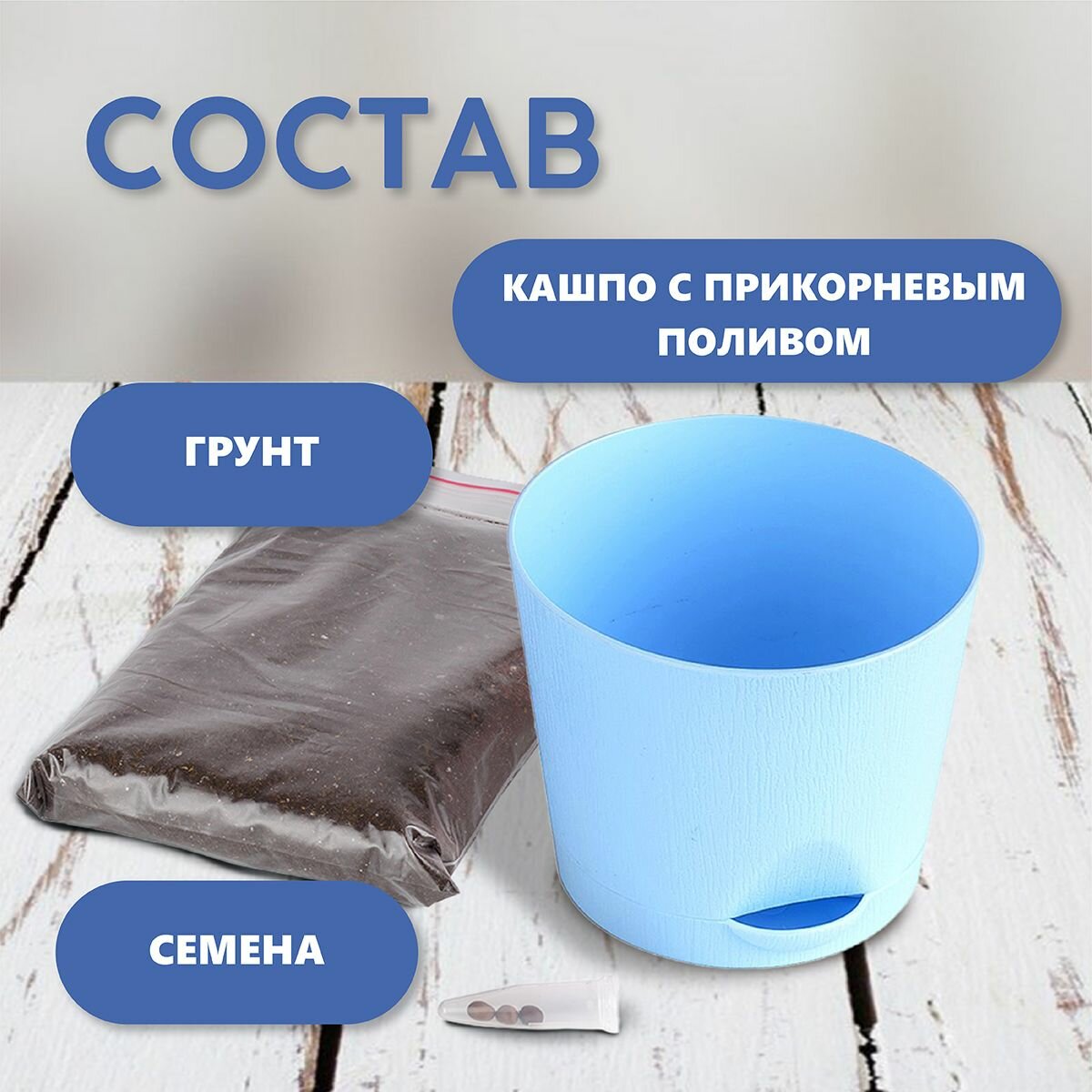 | Комплектация | Пластиковый горшок объёмом 0,4 литра с системой прикорневого полива. Даная система регулирует поступление воды в растение и способствует циркуляции воздуха, что препятствует загниванию корневой системы. Семена. Плодородный грунт. Бирка для маркировки растения и даты посадки, используйте карандаш или маркер. |