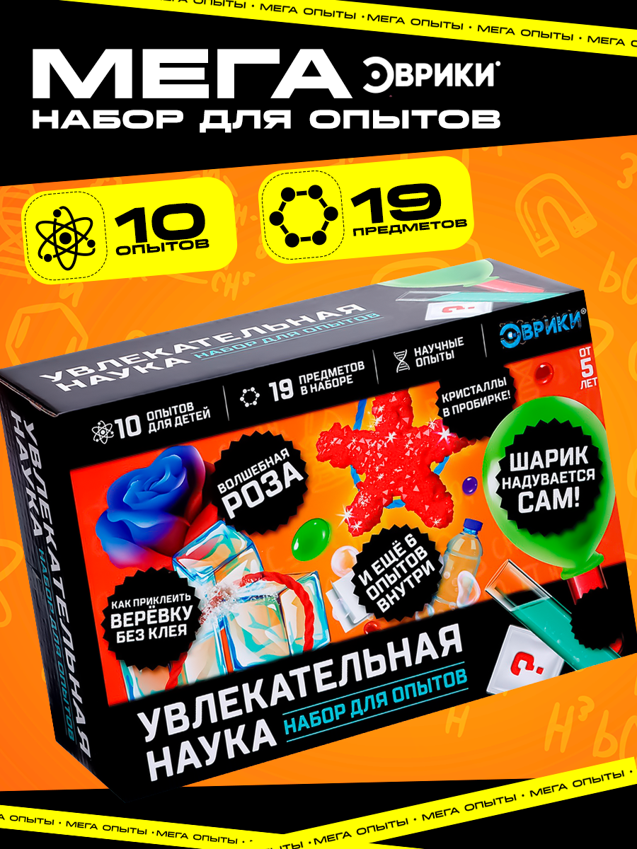 Набор для опытов "Увлекательная наука", 10 опытов, 19 предметов, только с родителями, Эврики интересное: