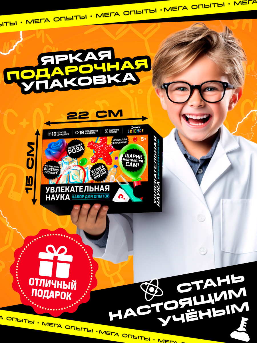 | Комплектация | 10 опытов для детей;19 предметов в наборе |