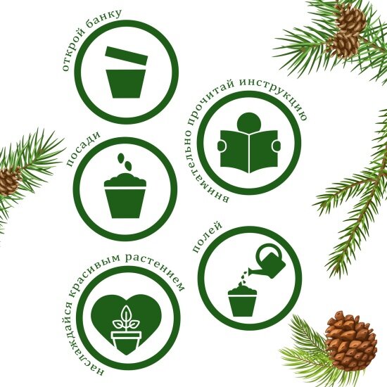 | Комплектация | пластиковый горшок, крышка-поддон для избытка влаги, семена кедра сибирского, плодородный грунт (PH=5.5-6.5), керамзит для дренажа |