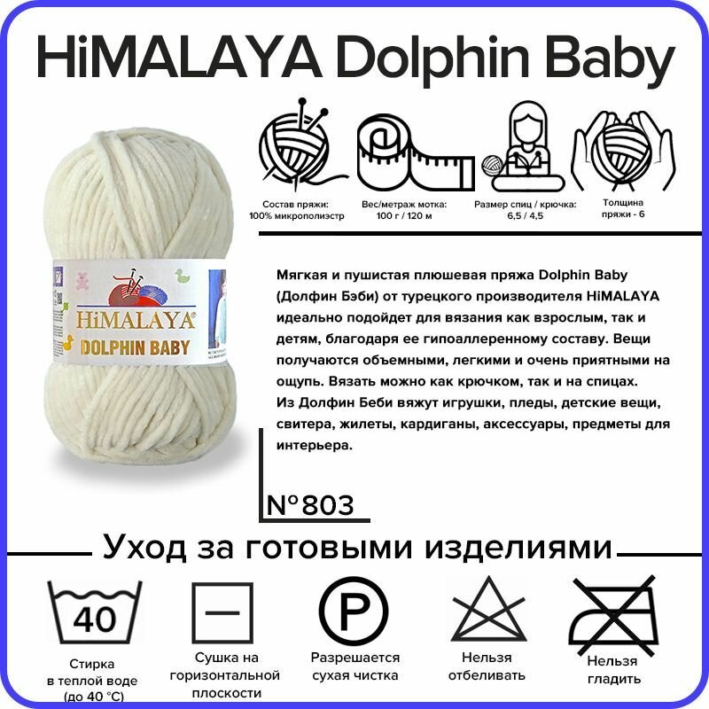 Пряжа Himalaya Dolphin Baby, 100 % полиэстер, 100 г, 120 м, 1 шт., 80364