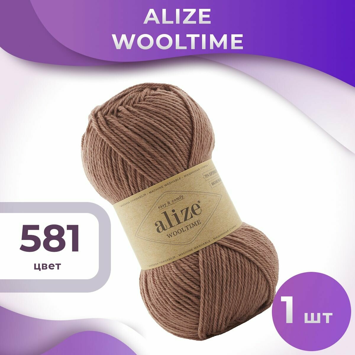 Пряжа Alize Wooltime кофейный (240), 75%шерсть/25%полиамид, 200м, 100г, 1шт