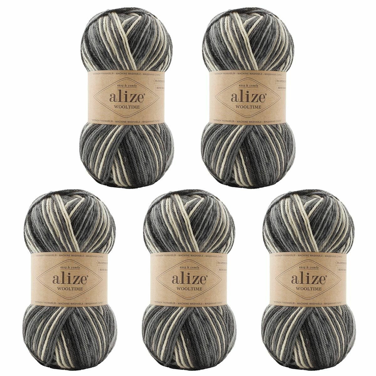 Купить Пряжа Alize Wooltime принт черный-серый-белый (11016), 75%шерсть/25%полиамид, 200м, 100г, 5шт