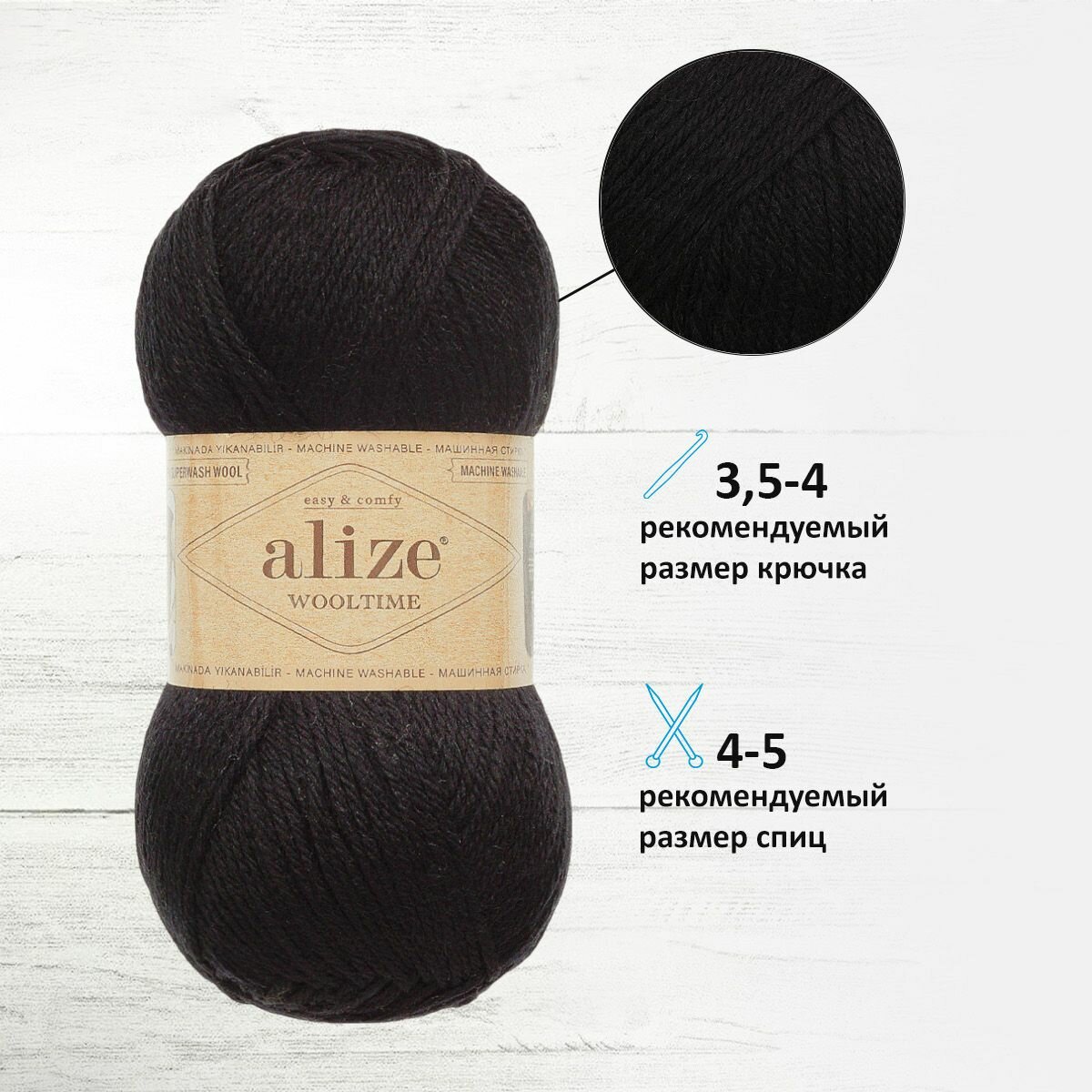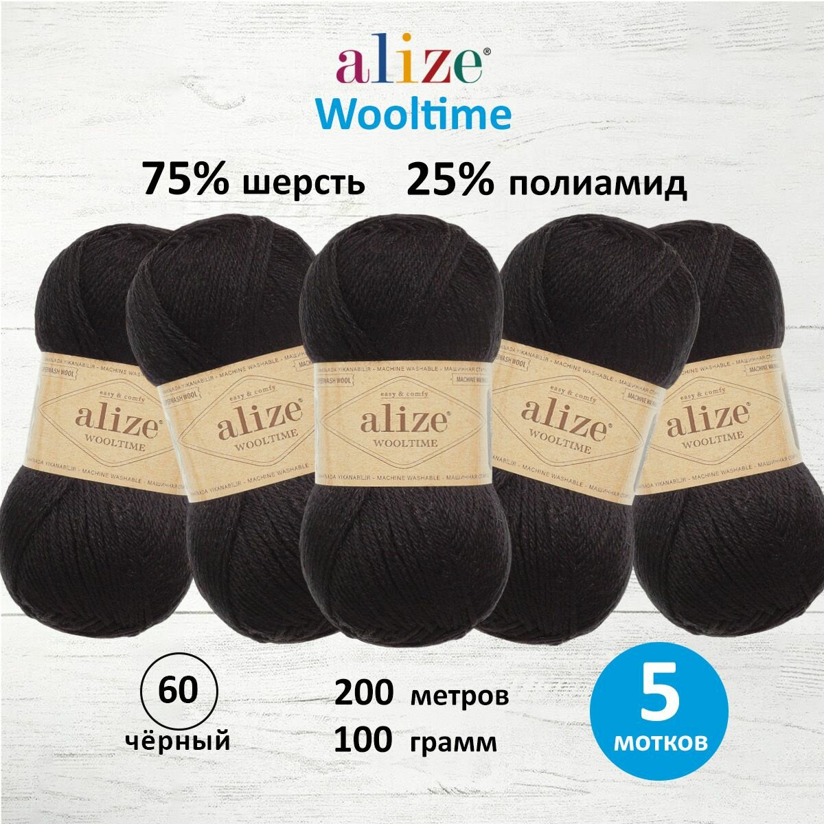 Купить Пряжа Alize Wooltime чёрный (60), 75%шерсть/25%полиамид, 200м, 100г, 5шт