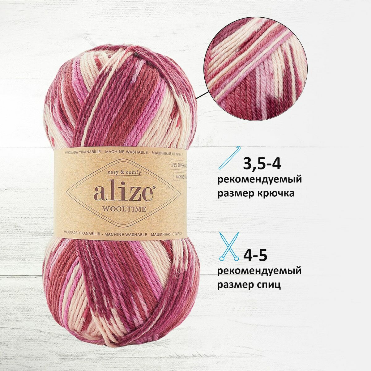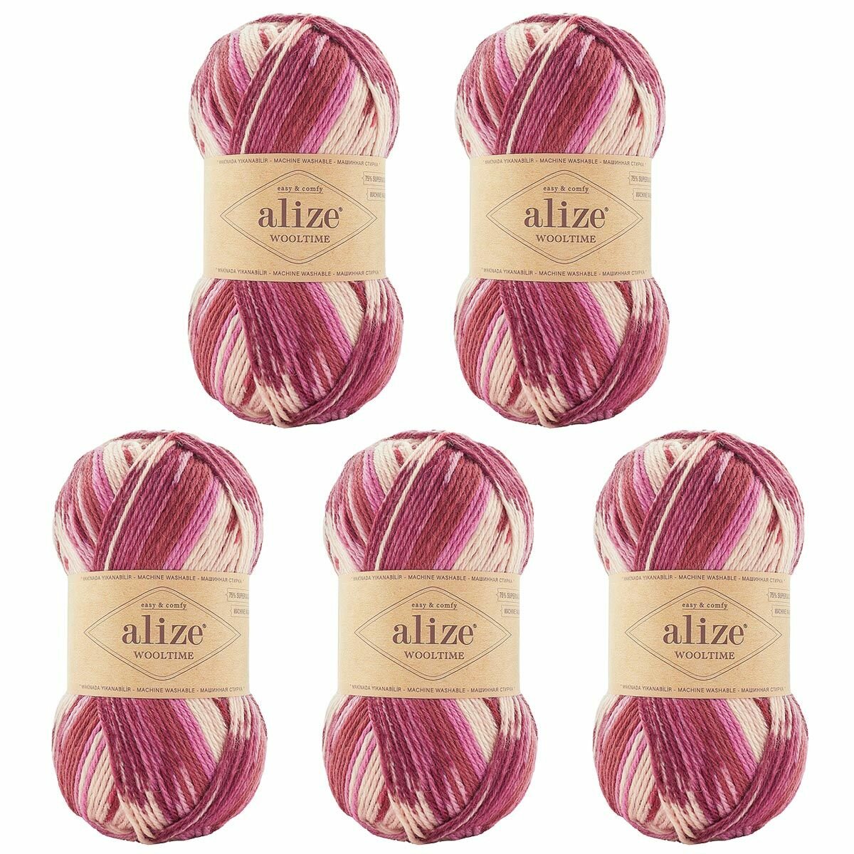 Пряжа ALIZE Wooltime Суперваш Вултайм 5*100г*200м цвет 235 Цветок Страсти