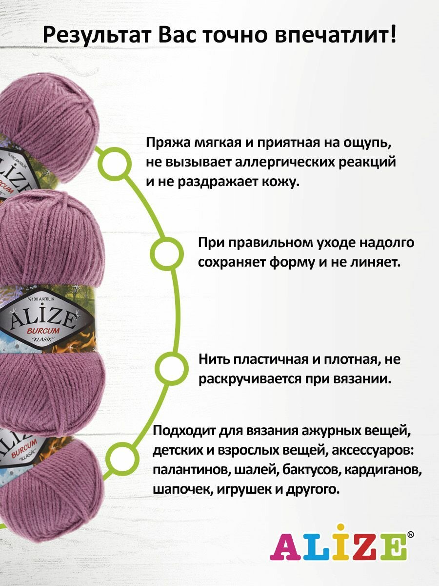 Ниже Вы можете прочитать отзывы на Пряжа для вязания ALIZE 'Burcum Klasik', 100г, 210м (100% Акрил) (28 сухая роза), 5 мотков, ознакомится с подробными характеристиками, посмотреть интересные обзоры и фотографии на Пряжа для вязания ALIZE 'Burcum Klasik', 100г, 210м (100% Акрил) (28 сухая роза), 5 мотков.