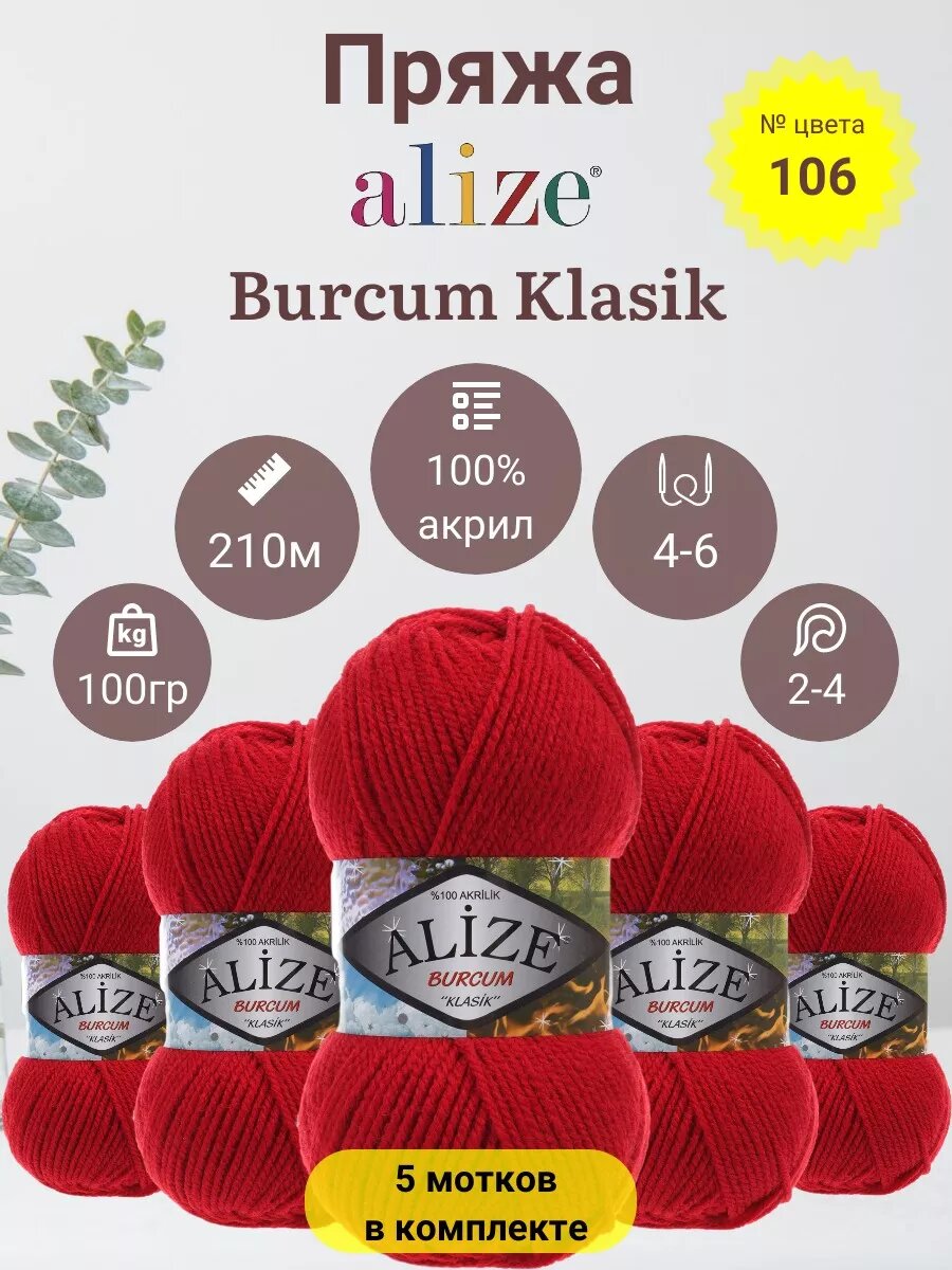 Пряжа для вязания ALIZE 'BURCUM KLASIK' 100гр. 210м (100% Акрил) (106 красный), 5 мотков