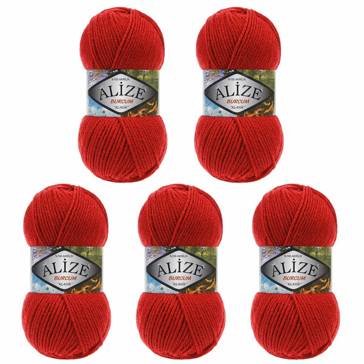 Пряжа ALIZE 'BURCUM KLASIK' 100гр. 210м (100% Акрил) (106 красный). В комплекте 5 штук.