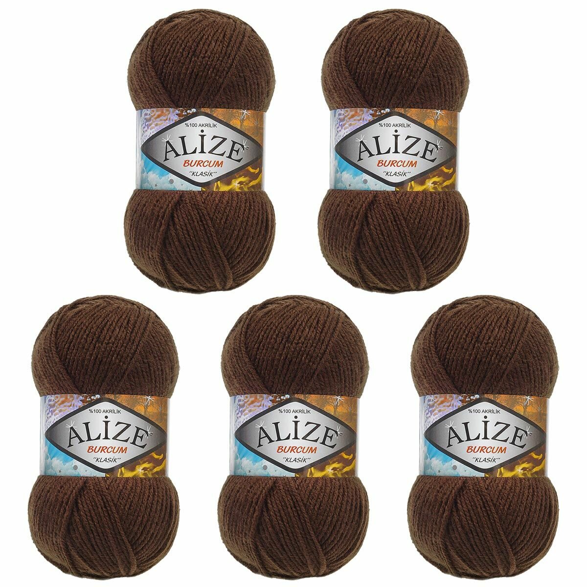 Пряжа для вязания ALIZE 'BURCUM KLASIK' 100гр. 210м (100% Акрил) (493 каштановый), 5 мотков