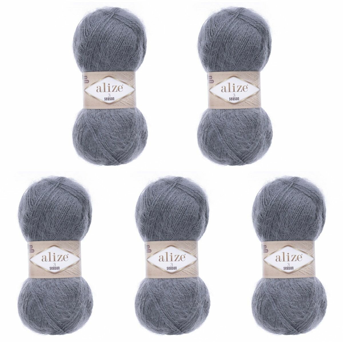 Пряжа ALIZE 3 Season, ализе 3 Сизон, серый (21), 2 мотка, 500 м, 100 г, состав: 25% мохер + 24% шерсть + 51% акрил