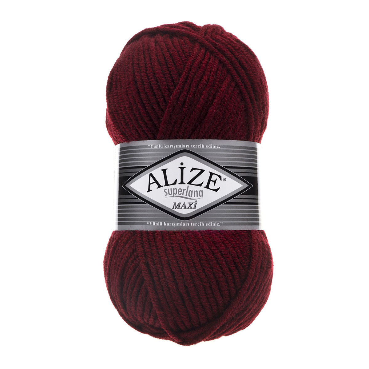 Пряжа для вязания ALIZE 'Superlana maxi', 100г, 100м (75% акрил, 25% шерсть), ТУ (57 бордо), 5 мотков