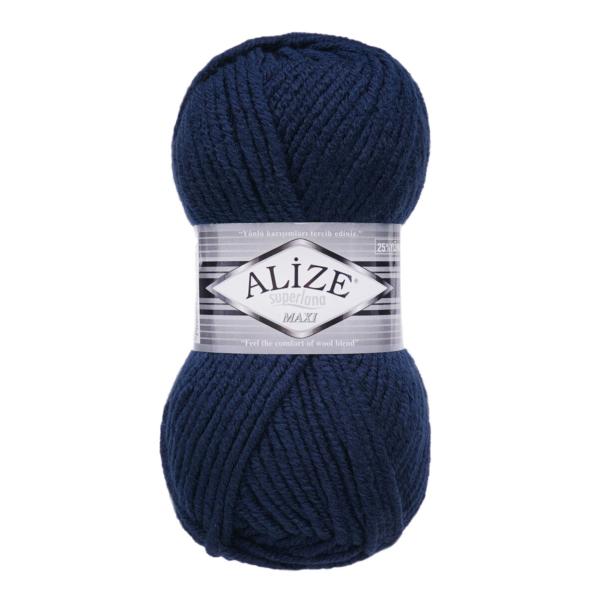 Пряжа для вязания ALIZE 'Superlana maxi', 100г, 100м (75% акрил, 25% шерсть), ТУ (805 темно-синий жаспе), 5 мотков