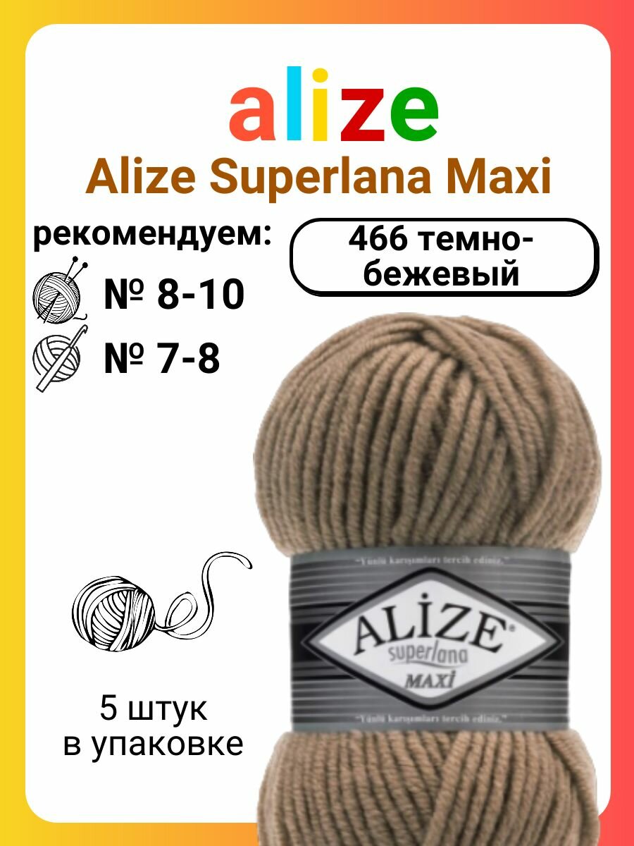 Пряжа Alize Superlana Maxi 466 темно-бежевый, 100 г, 100 м, 5 штук