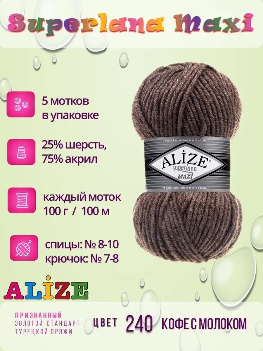 Ниже Вы можете прочитать отзывы на Пряжа Superlana Maxi Суперлана Макси кофе молоко меланж 240, ознакомится с подробными характеристиками, посмотреть интересные обзоры и фотографии на Пряжа Superlana Maxi Суперлана Макси кофе молоко меланж 240.