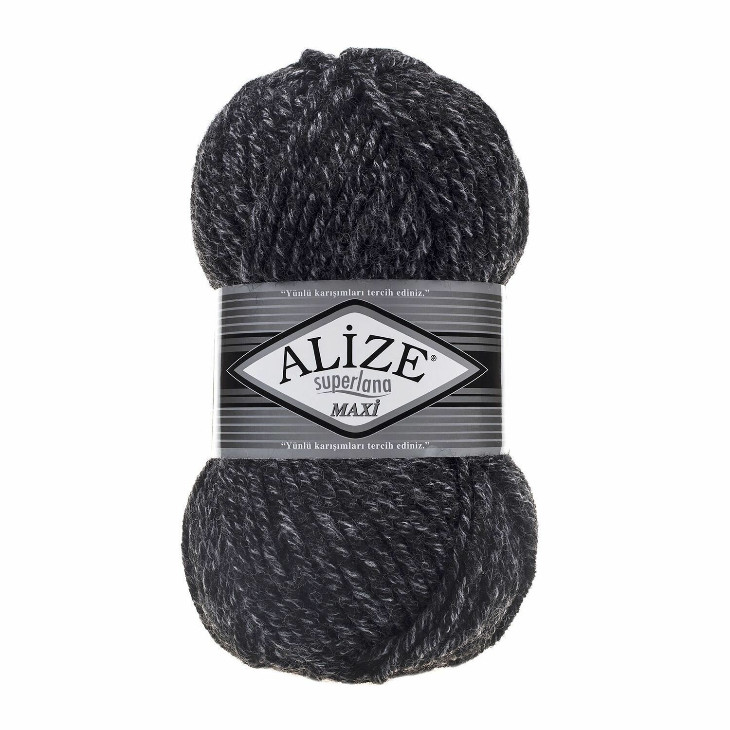Пряжа для вязания ALIZE 'Superlana maxi', 100г, 100м (75% акрил, 25% шерсть), ТУ (800 антрацитовый жаспе), 5 мотков