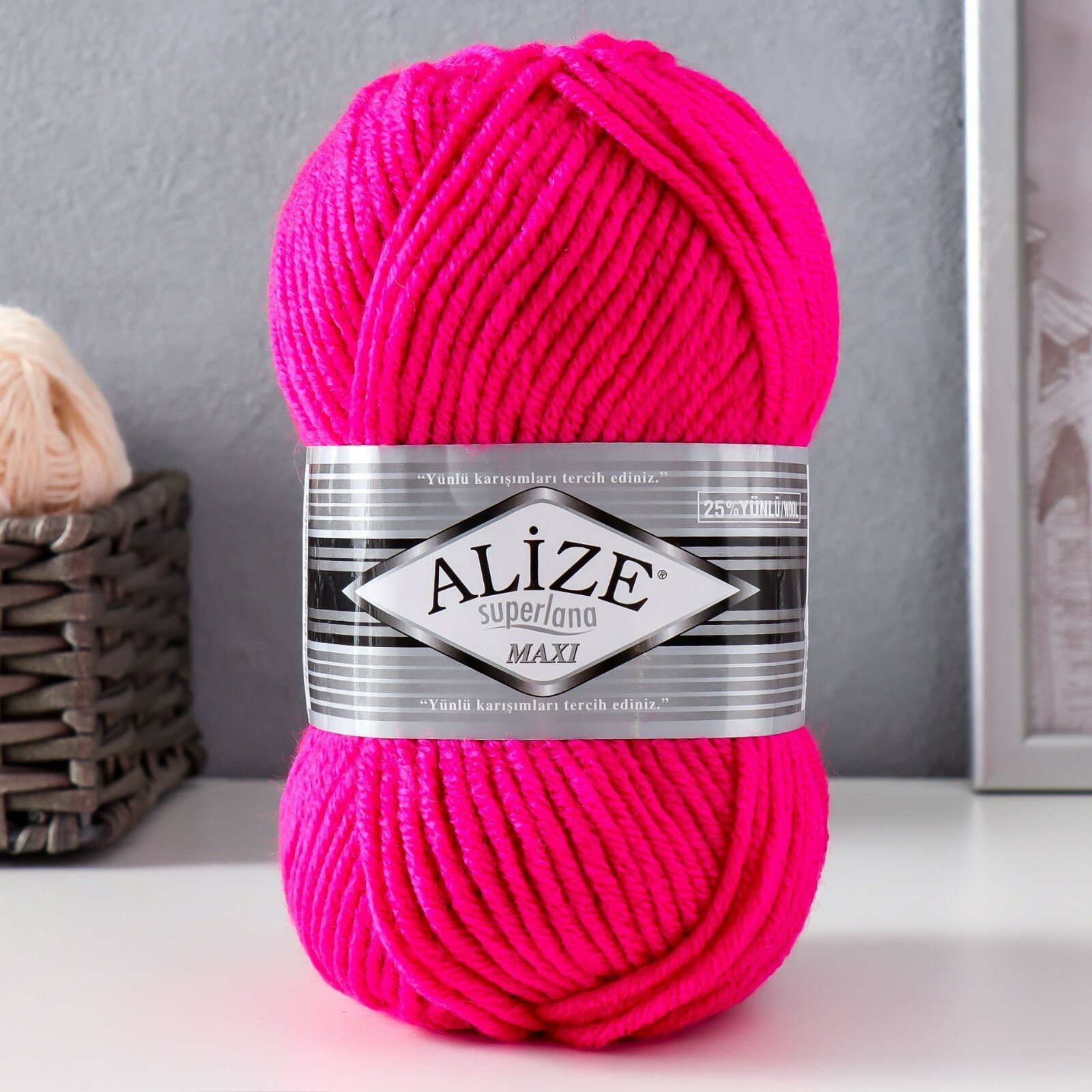 Купить Пряжа Alize Superlana Maxi (Ализе Суперлана Макси) - 5 мотков 149 фуксия 75% акрил, 25% шерсть 100м/100г