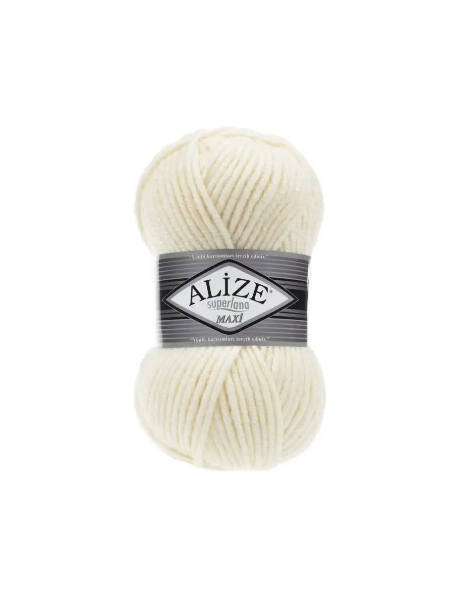 Пряжа ALIZE Superlana maxi Ализе Суперлана Полушерсть: 599 (слоновая кость), 1 шт 100 м 100 г, 25% шерсть , 75% акрил