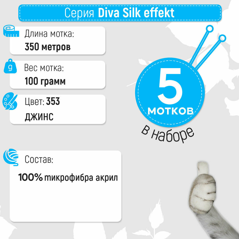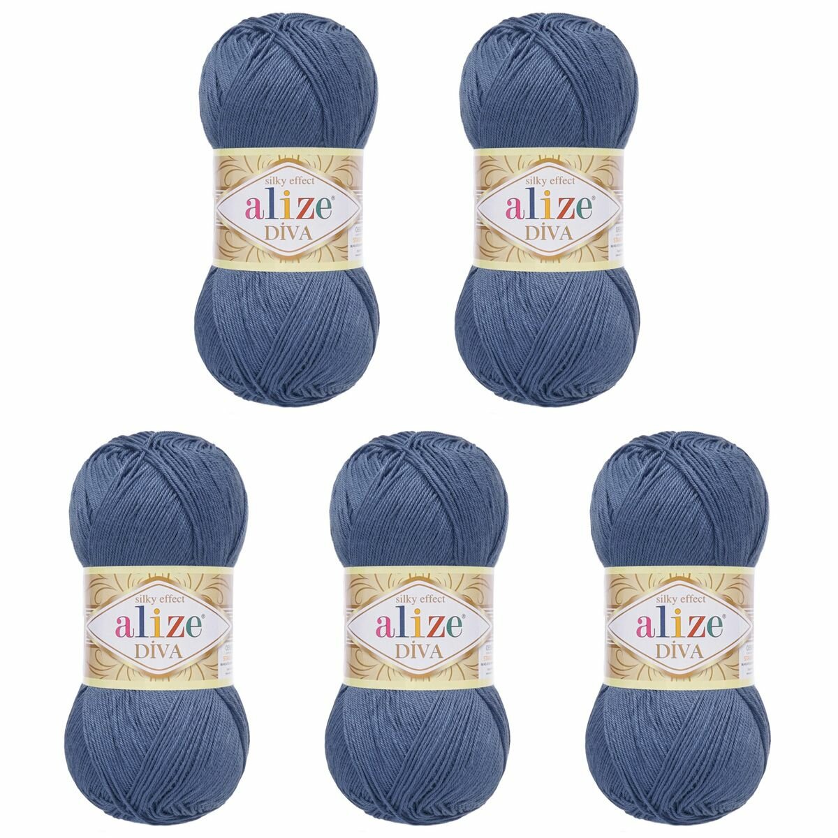 Пряжа для вязания Alize Diva 453 северное море, 100 г, 350 м, 5 штук