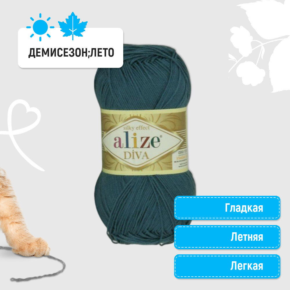 Пряжа для вязания ALIZE 'Diva', 100г, 350м (100% микрофибра) ТУ (646 темно-бирюзовый), 5 мотков