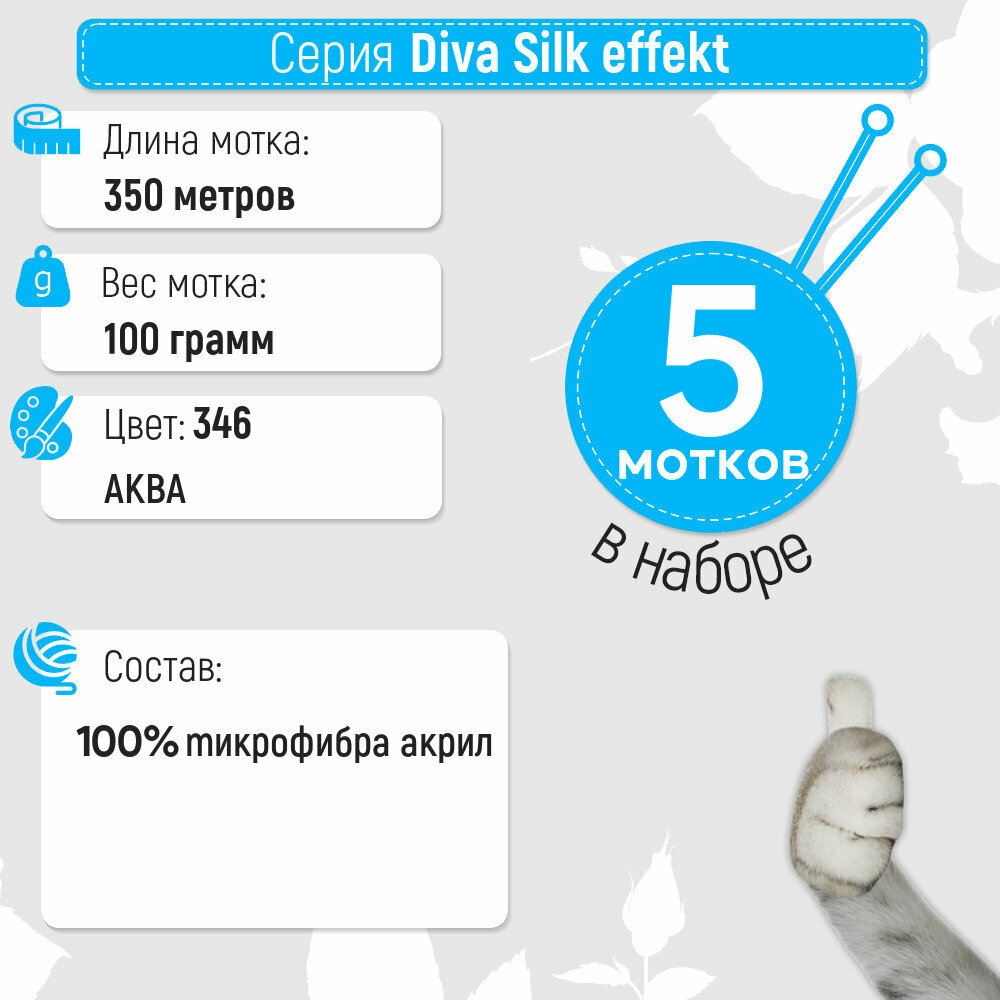 СохранитьПряжа Alize Diva небесный (346), 100%микрофибра, 350м, 100г, 5шт интересное: