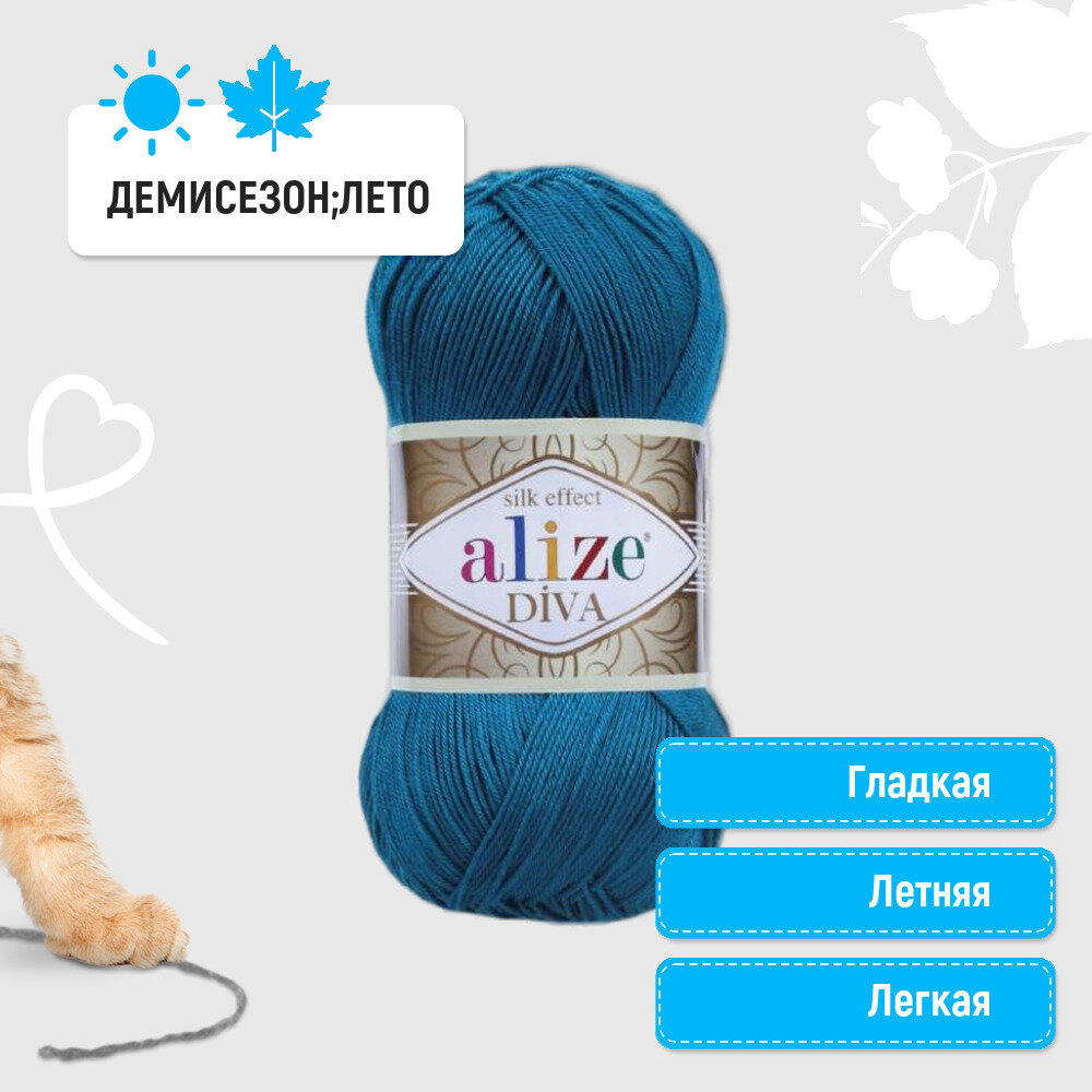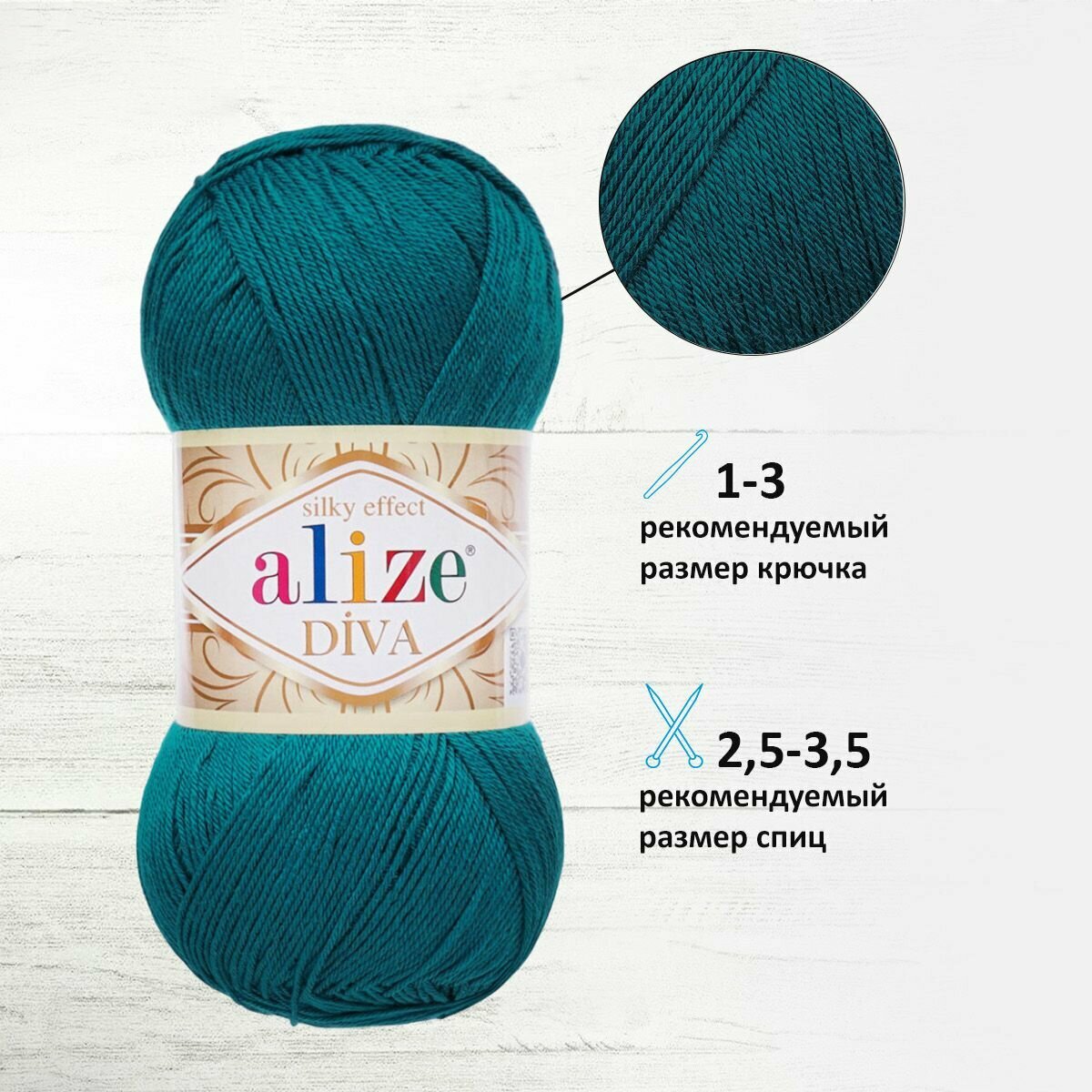 Купить Пряжа для вязания ALIZE 'Diva', 100г, 350м (100% микрофибра) ТУ (646 темно-бирюзовый), 5 мотков