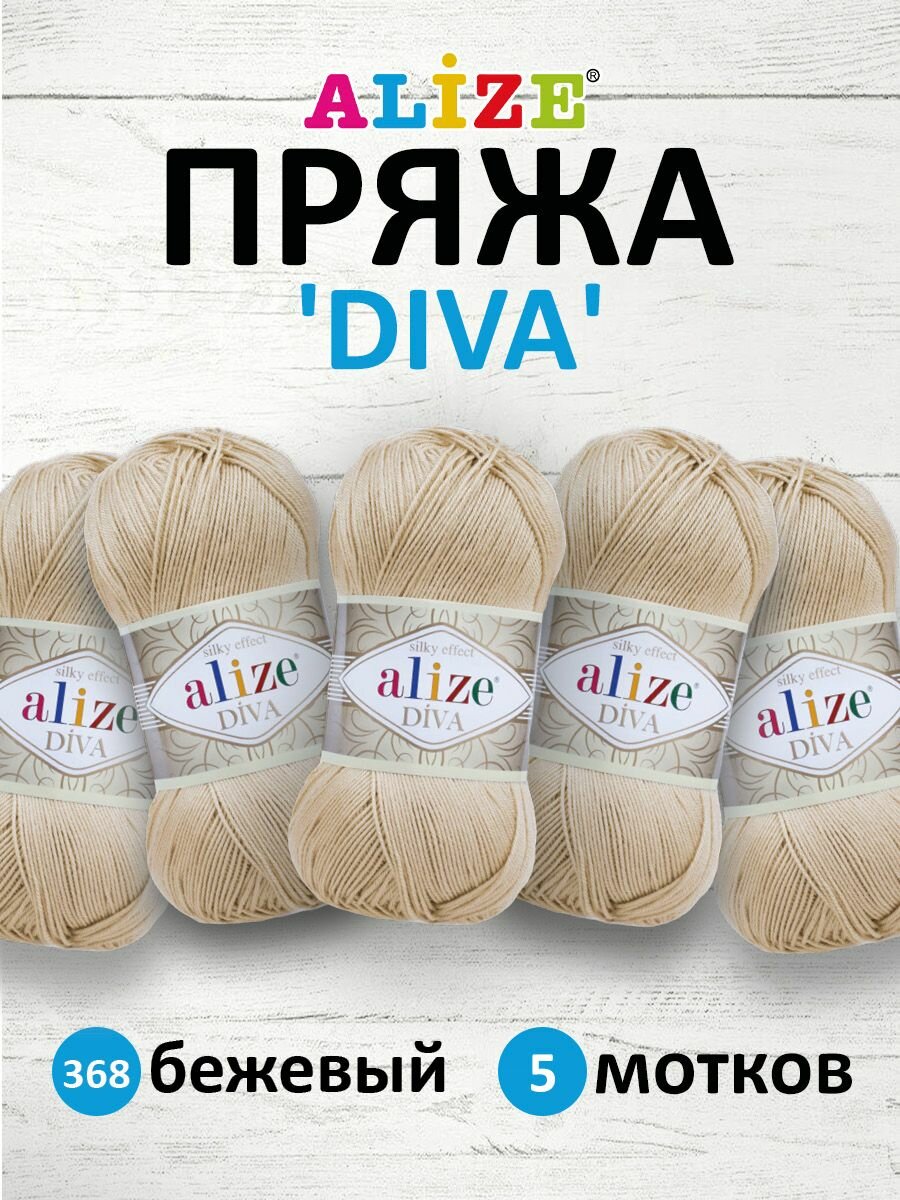 Пряжа Alize Diva Silk effekt (368 беж), 5 шт. по 100 г, Alize