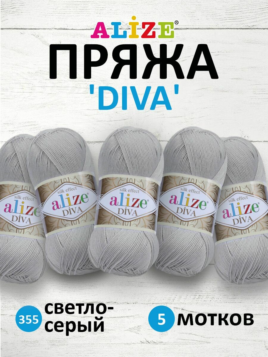 Купить Пряжа для вязания ALIZE 'Diva', 100г, 350м (100% микрофибра) ТУ (355 светло-серый), 5 мотков