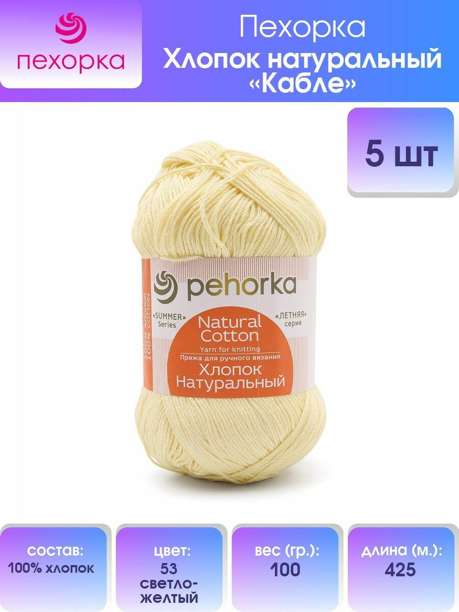 Купить Пряжа для вязания Пехорка 'Хлопок натуральный 'Кабле' 100гр. 425м. (100% хлопок) (53-Св.желтый), 5 мотков
