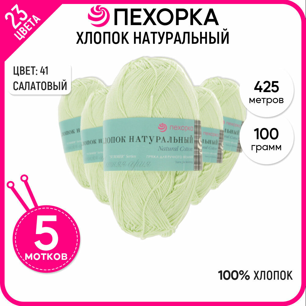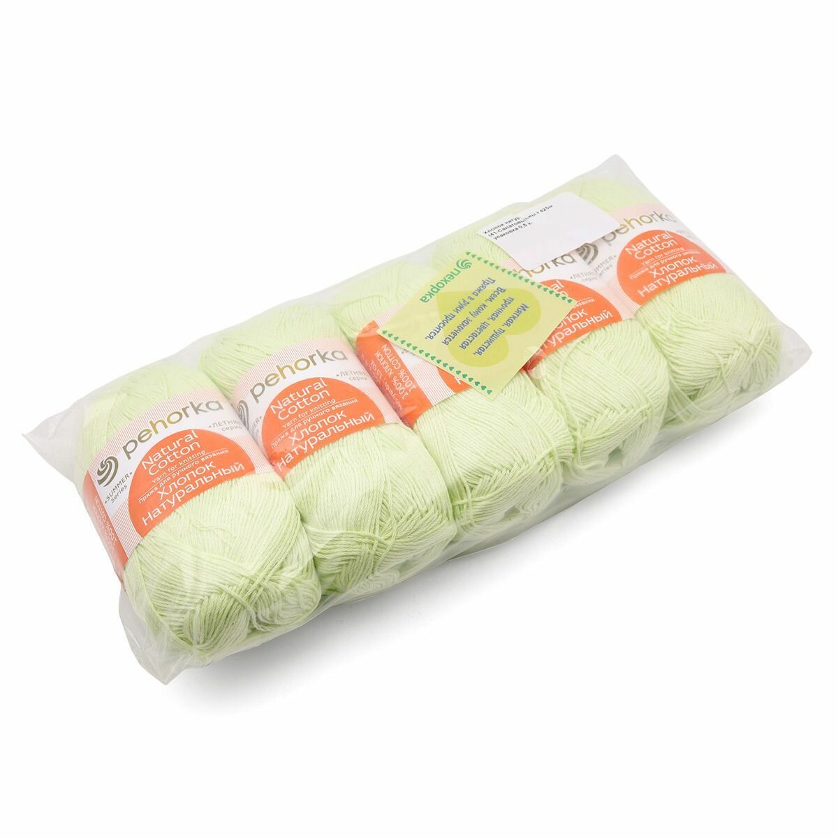 Пряжа Пехорка Хлопок Натуральный- 5 мотков 41 салатовый 100% хлопок 425м/100г