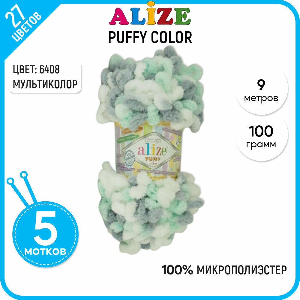 Пряжа для вязания плюшевая с петельками Alize Puffy Color, цвет 6471, 100г, 9м, 5 шт/упак