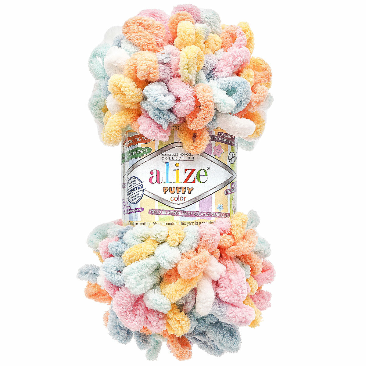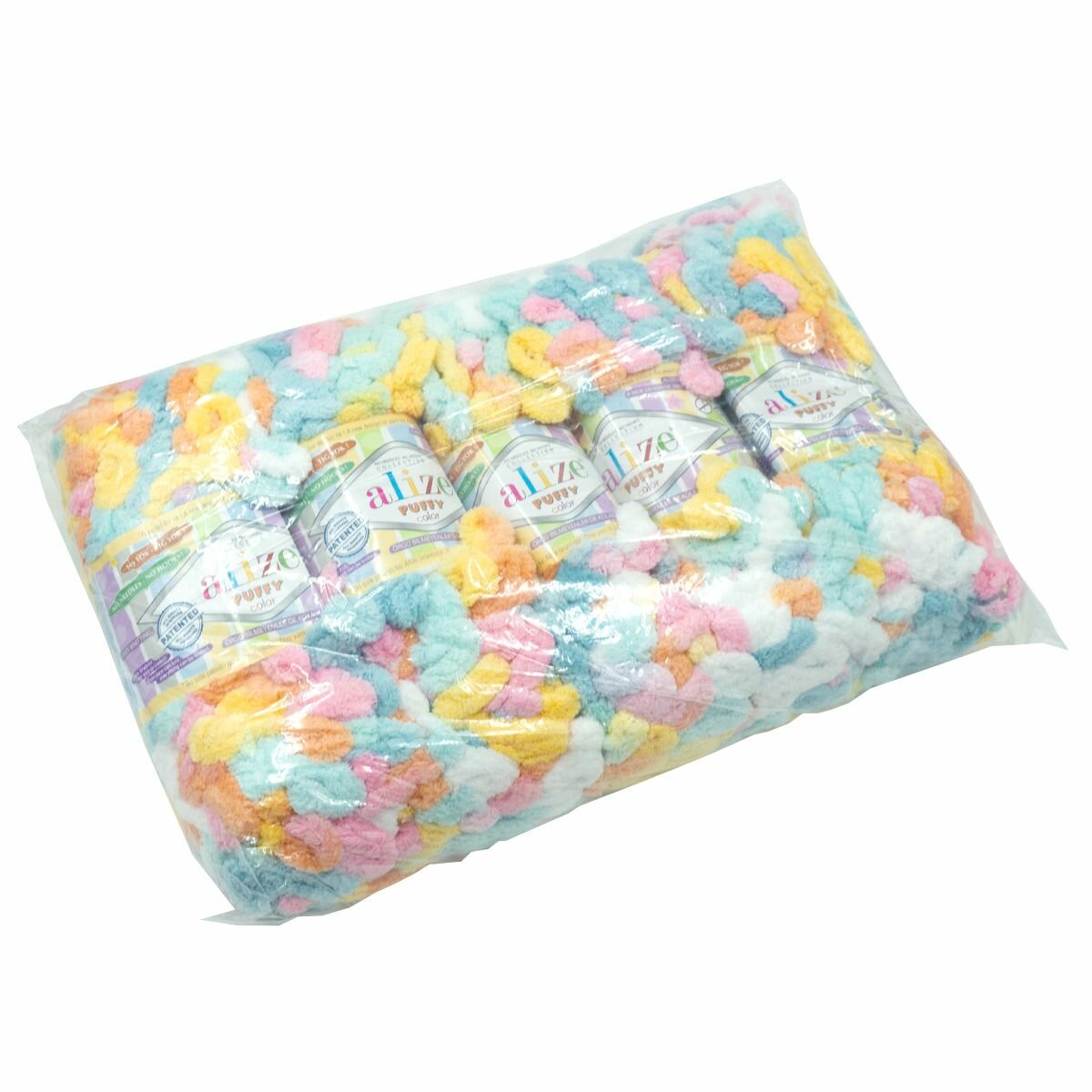 Пряжа PUFFY COLOR (Alize), сал/бир/сир/роз - 6526, 100% микрополиэстер, 5 мотков, 100 г, 9 м.