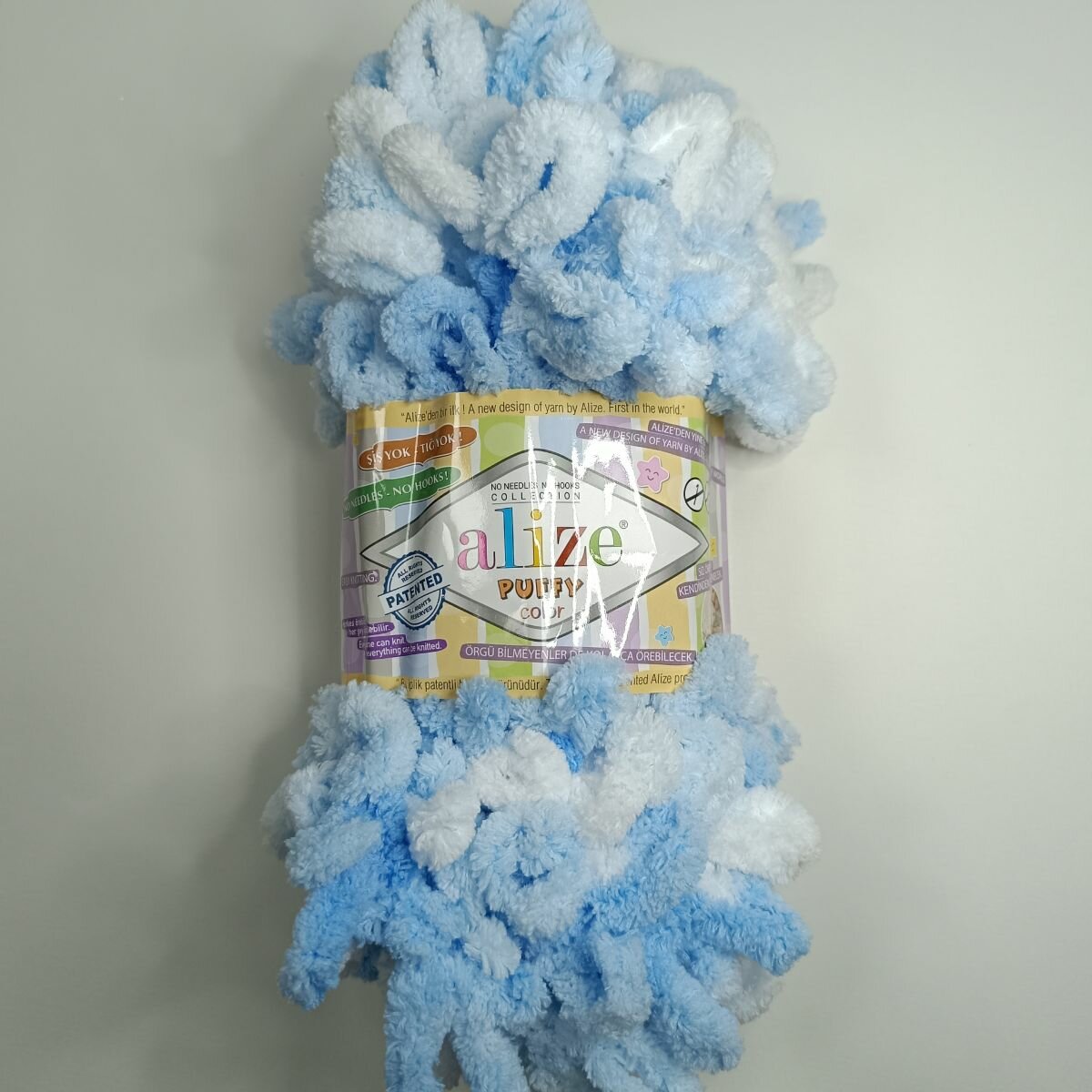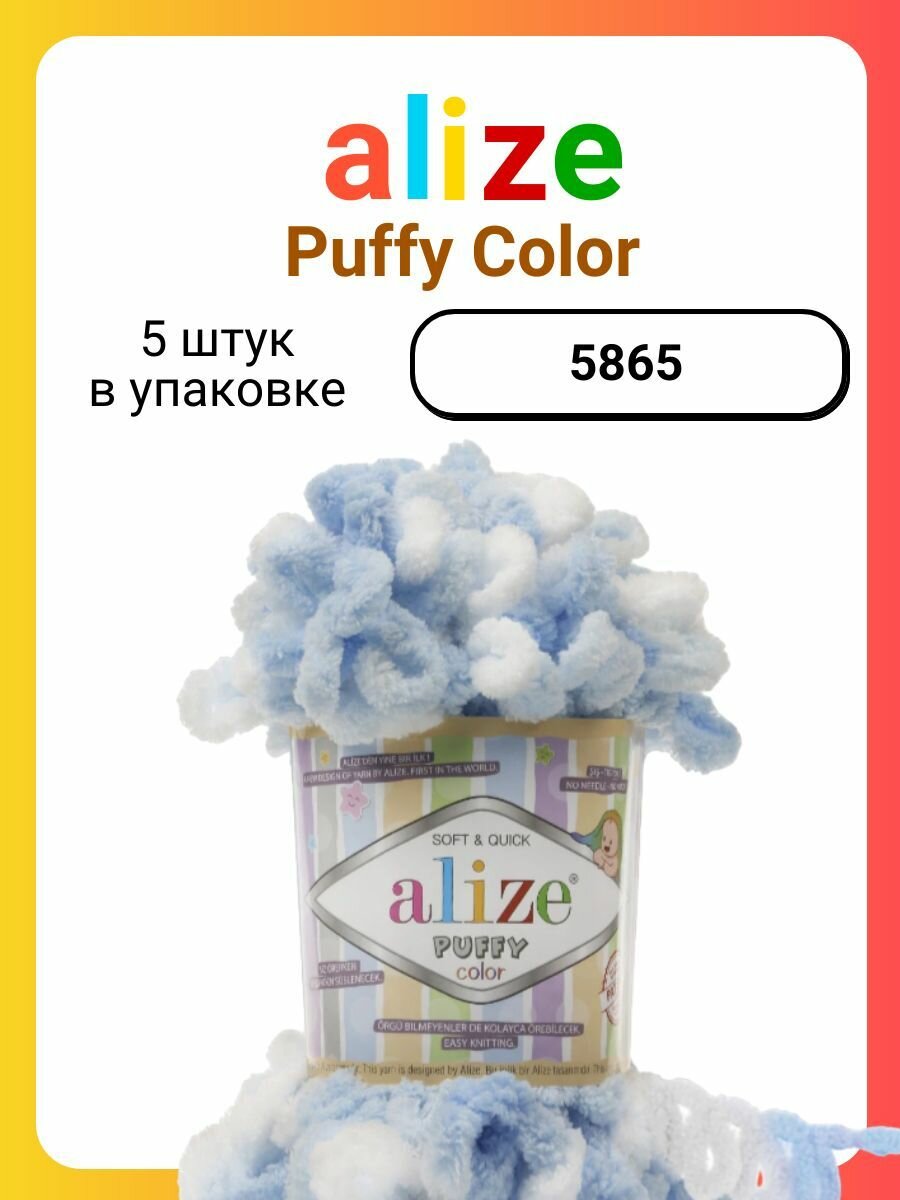 Пряжа PUFFY COLOR (Alize), бело-голубой - 5865, 100% микрополиэстер, 5 мотков, 100 г, 9 м.