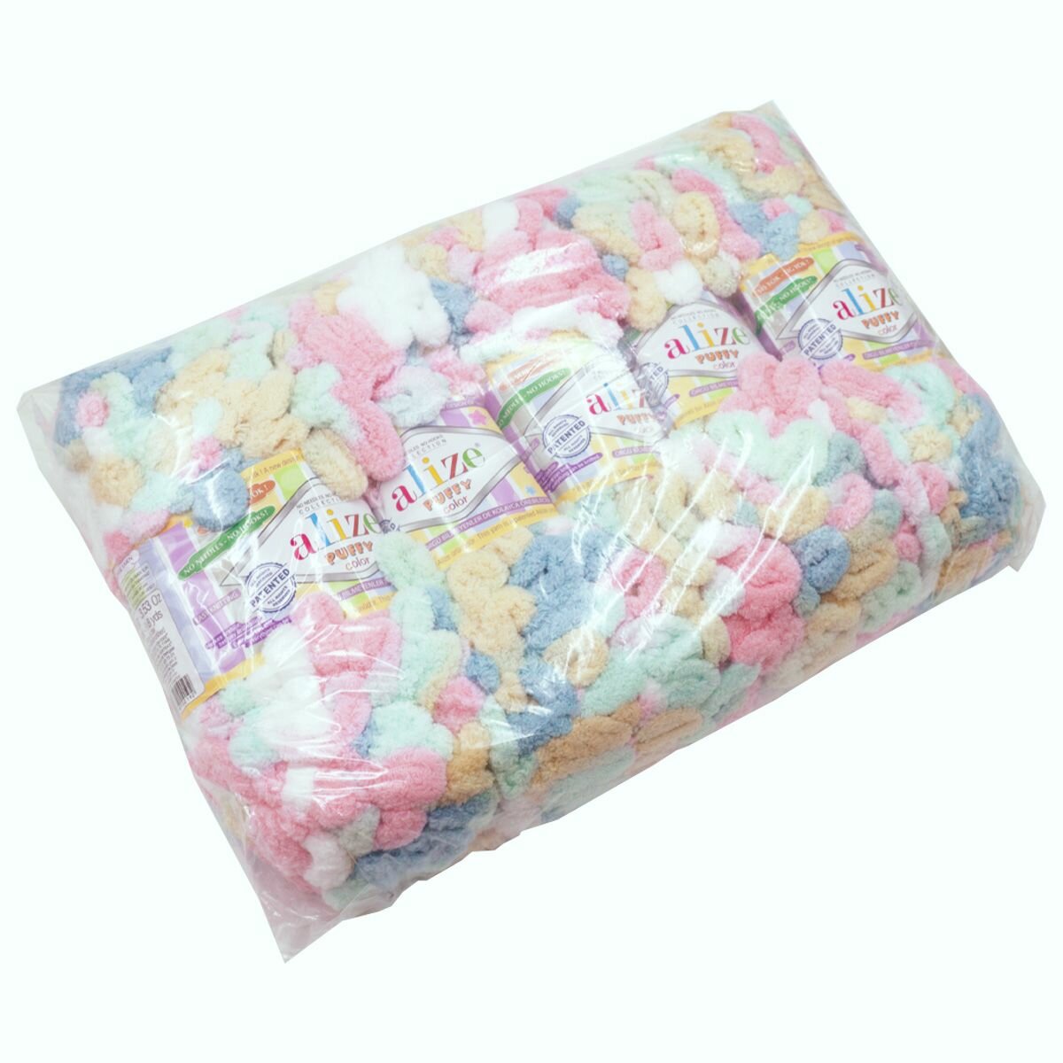 Пряжа PUFFY COLOR (Alize), сал/бир/сир/роз - 6526, 100% микрополиэстер, 5 мотков, 100 г, 9 м.