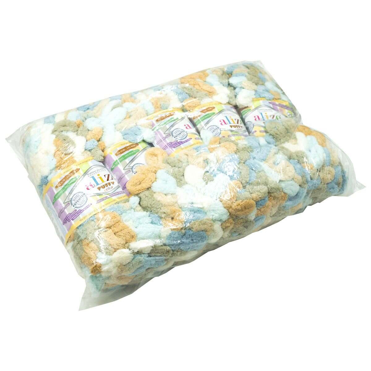 Пряжа PUFFY COLOR (Alize), бело-голубой - 5865, 100% микрополиэстер, 5 мотков, 100 г, 9 м.