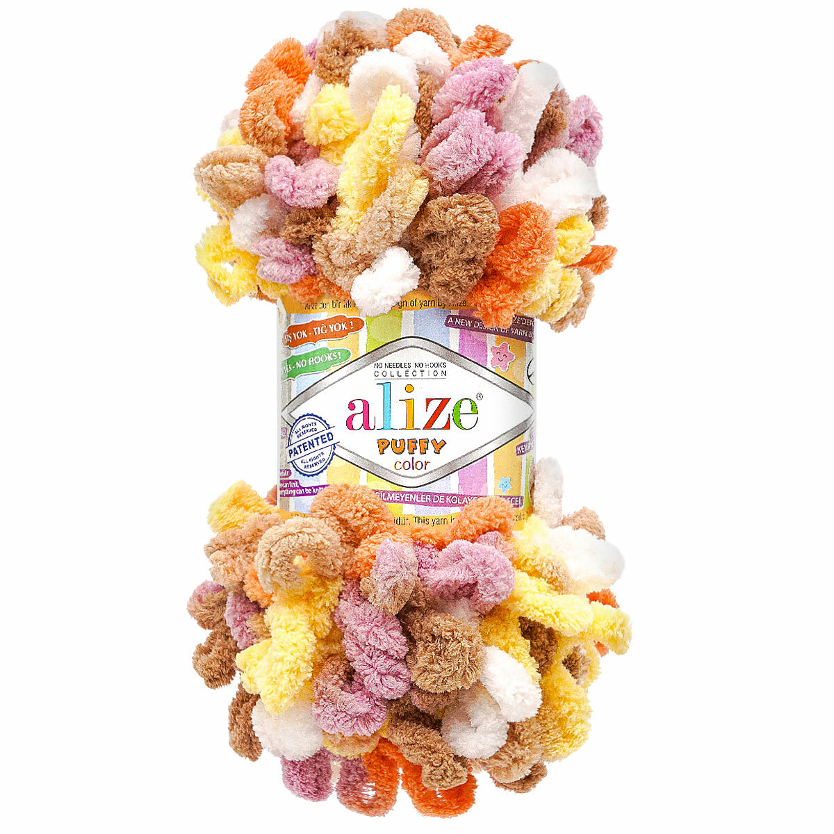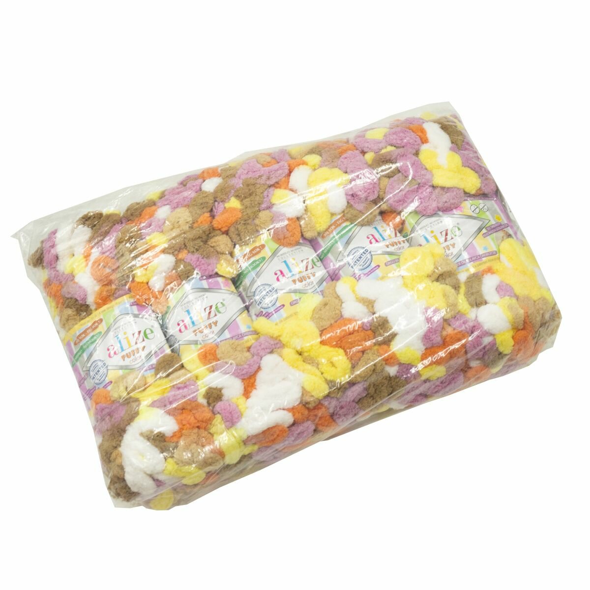 Пряжа PUFFY COLOR (Alize), бир/гол/роз/оранж - 6521, 100% микрополиэстер, 5 мотков, 100 г, 9 м.