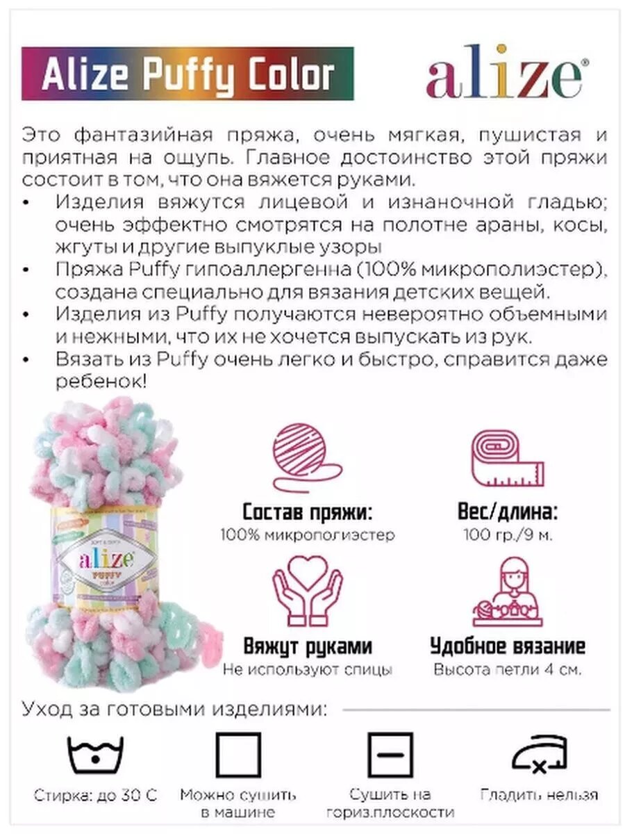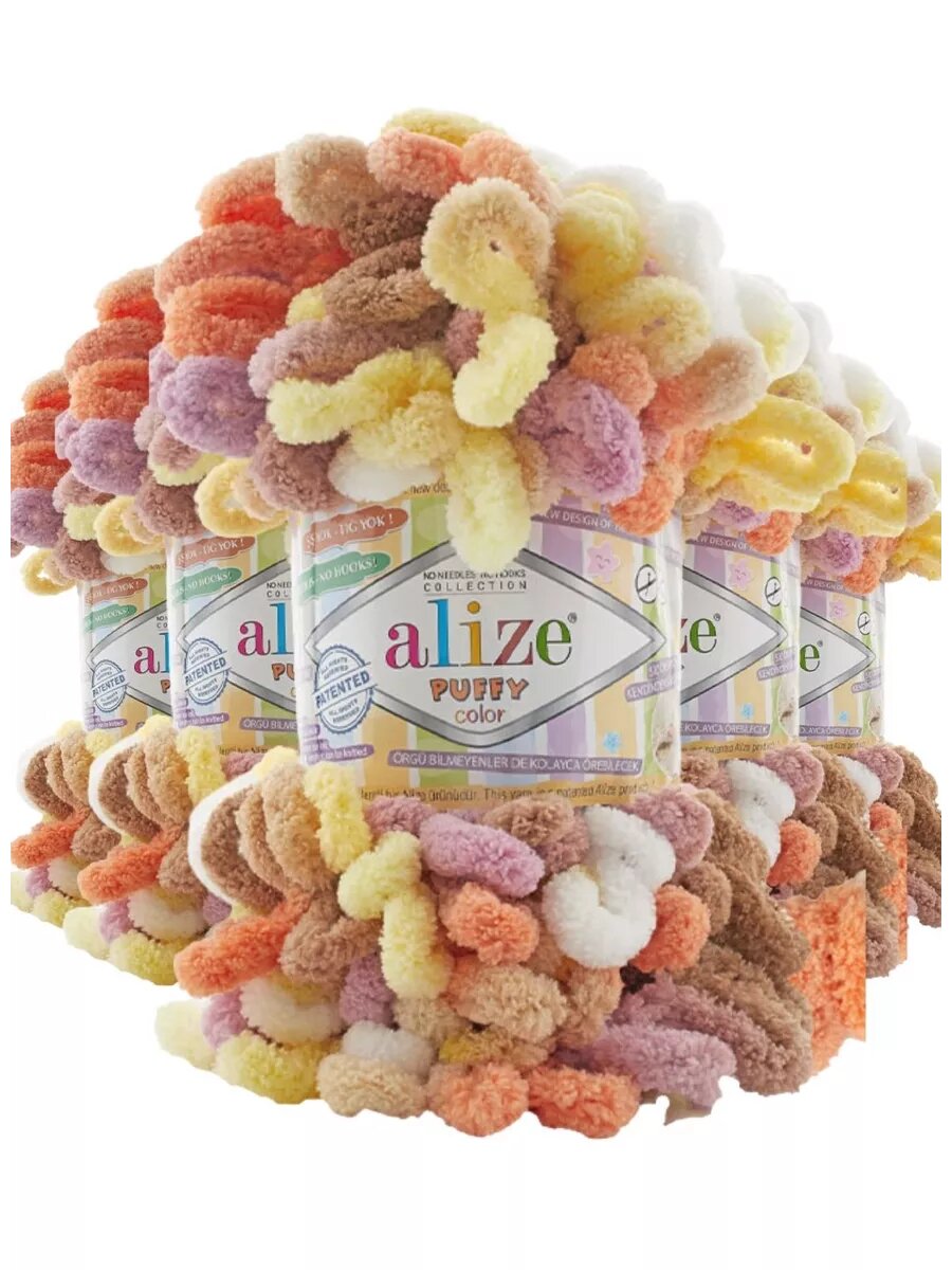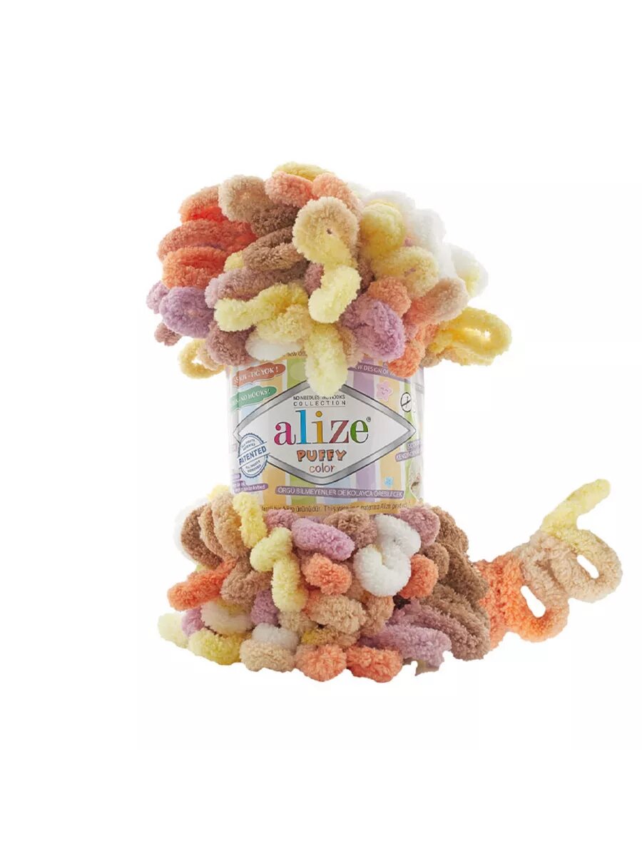СохранитьПряжа для вязания руками с готовыми петлями ALIZE 'Puffy Color' 100г, 9м (6531 секционный), 5 мотков интересное: