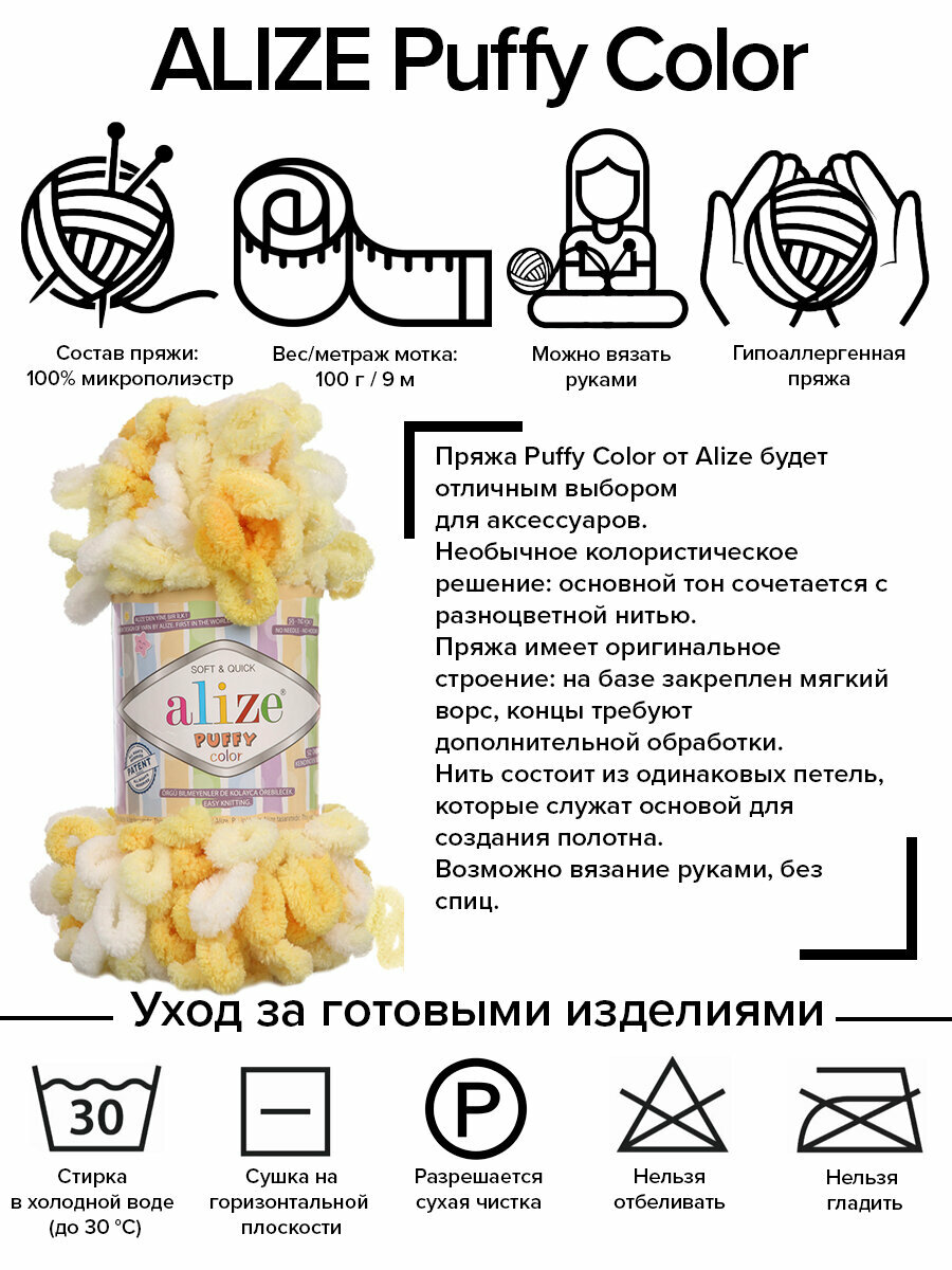 СохранитьПряжа Alize Puffy Color - 5921, 100г x 9м - 4 шт / Ализе Пуффи Колор - разноцветная пряжа с большими петлями интересное: