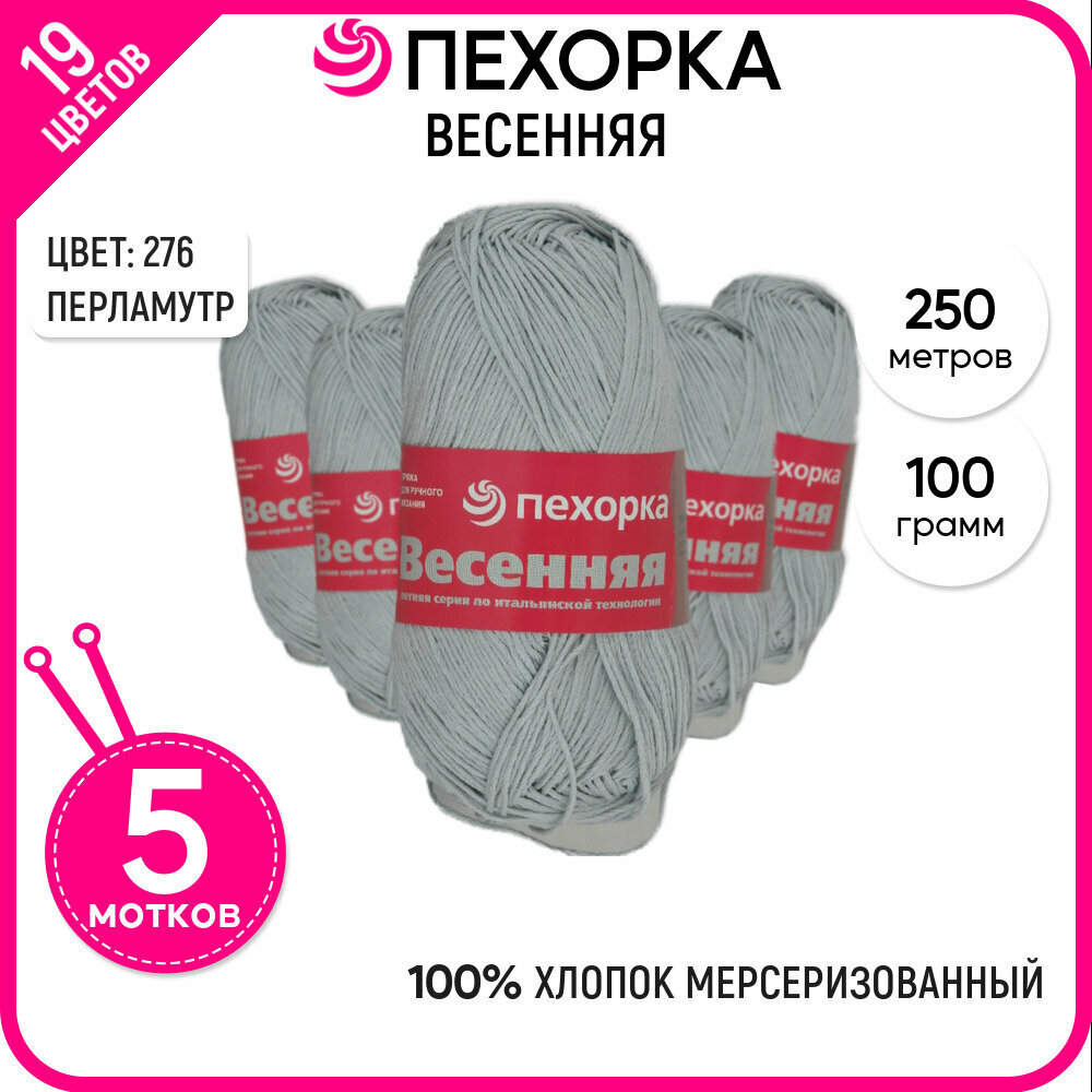 Пряжа Весенняя (Пехорка), Перламутр - 276, 100% мерсеризованный хлопок, 5 мотков, 100 г., 250 м.