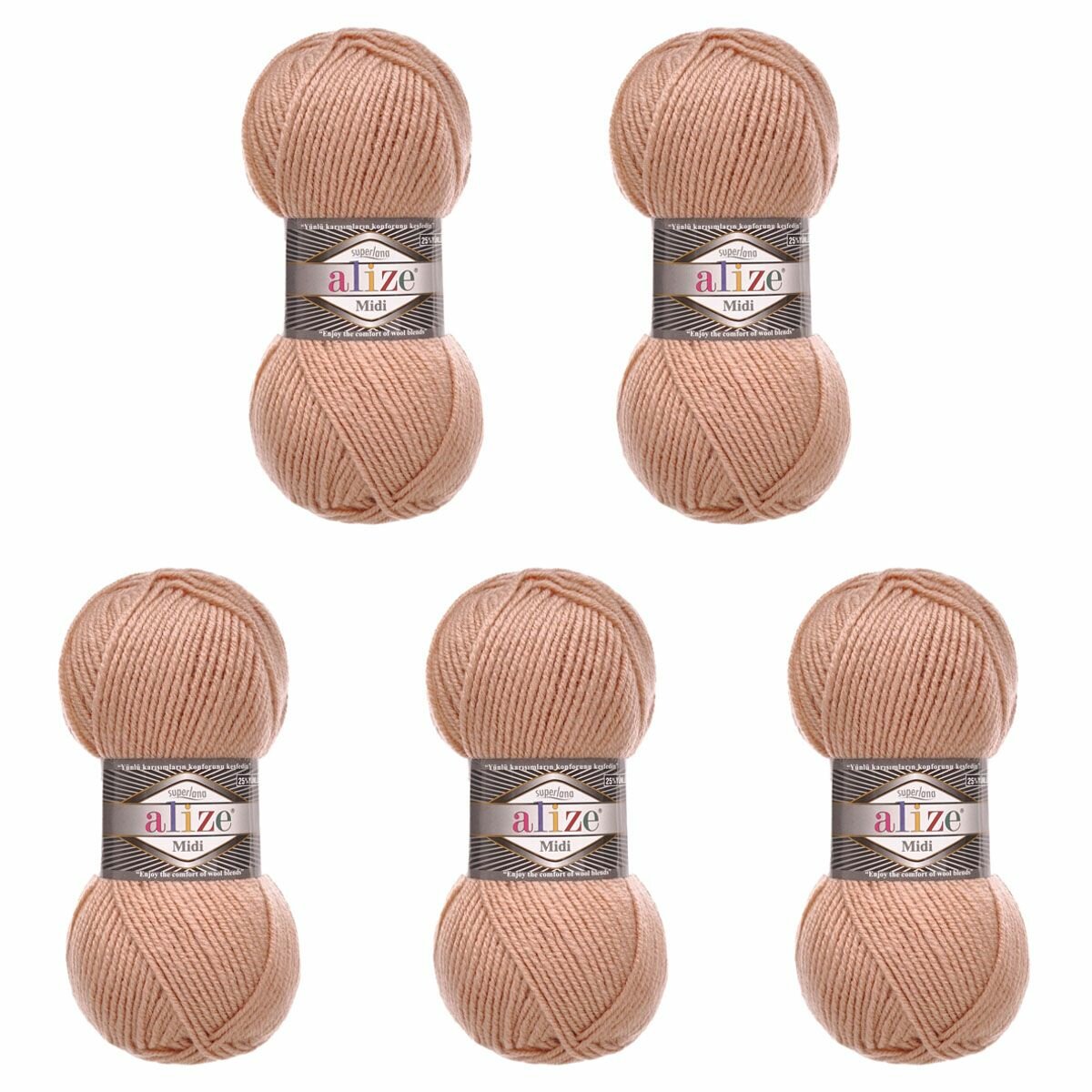 Пряжа Суперлана миди Alize (Superlana Midi) упаковка 5 мотков 100 гр. 170 м. 25% шерсть 75% акрил цвет 502 крем-карамель
