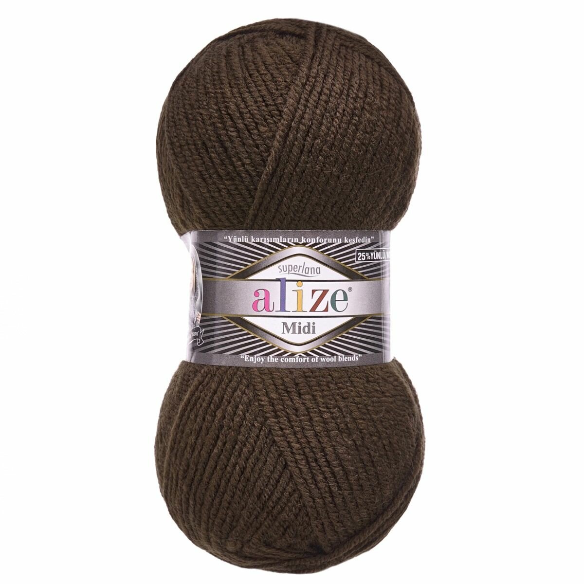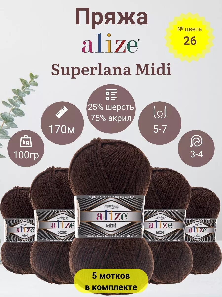 Пряжа для вязания Alize Superlana Midi, цвет 26 коричневый, 100г, 170м, 5шт/упак